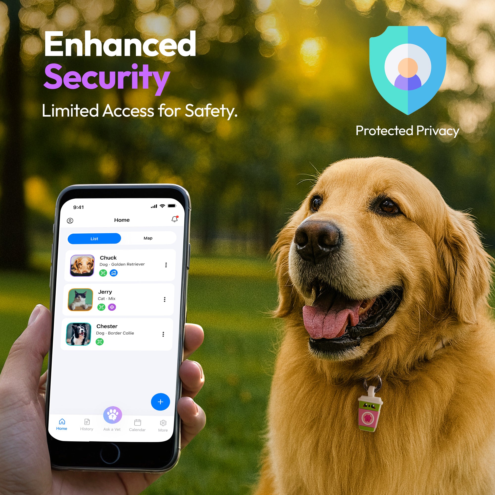 - 📱 Smart ID Features: Store emergency contacts, vet info, allergies, and special needs online.
