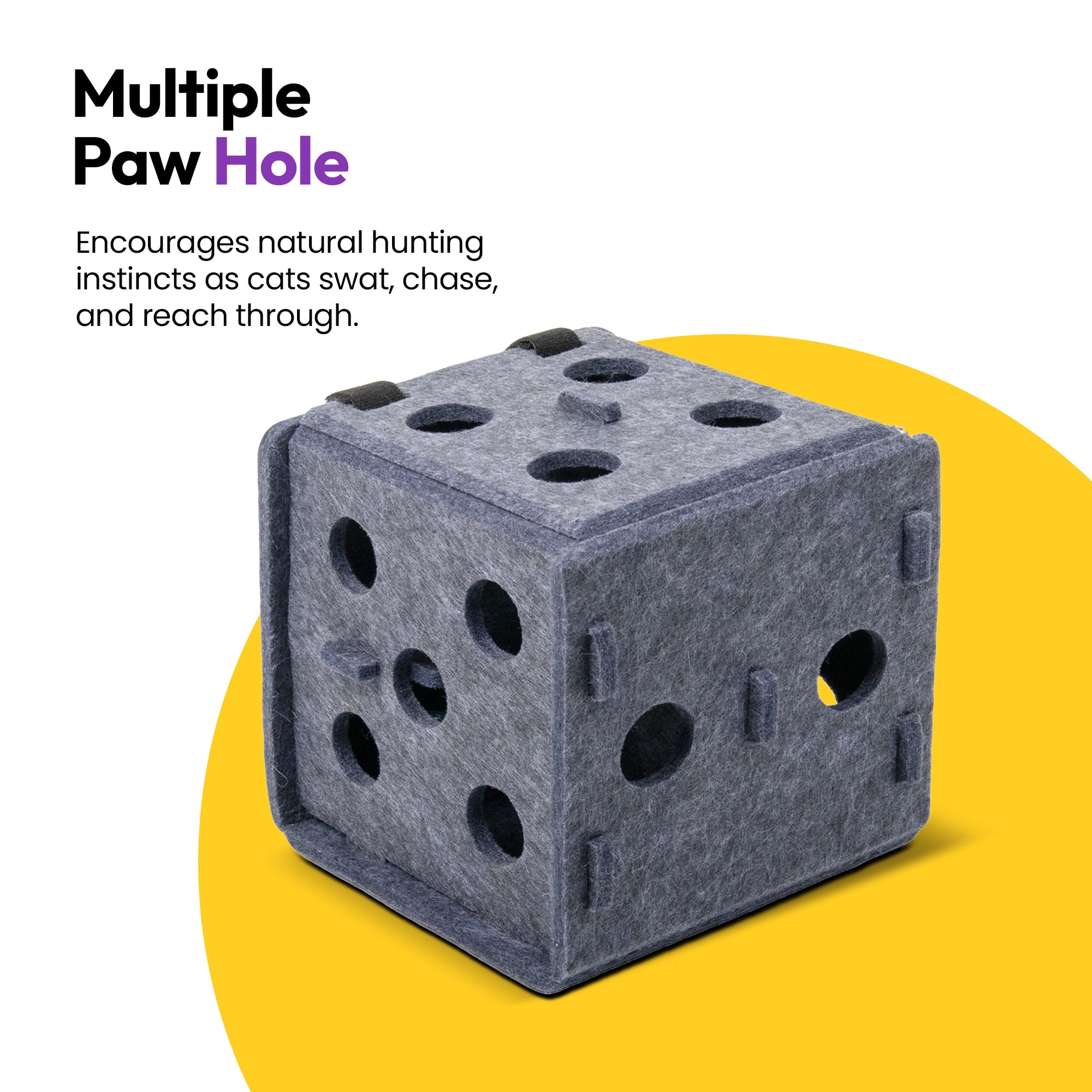 A jingling ball rolls and rings inside the cube as your cat paws at it, creating stimulating sound and movement to capture their attention for hours. - ✔️ Multiple Paw Holes 🐾