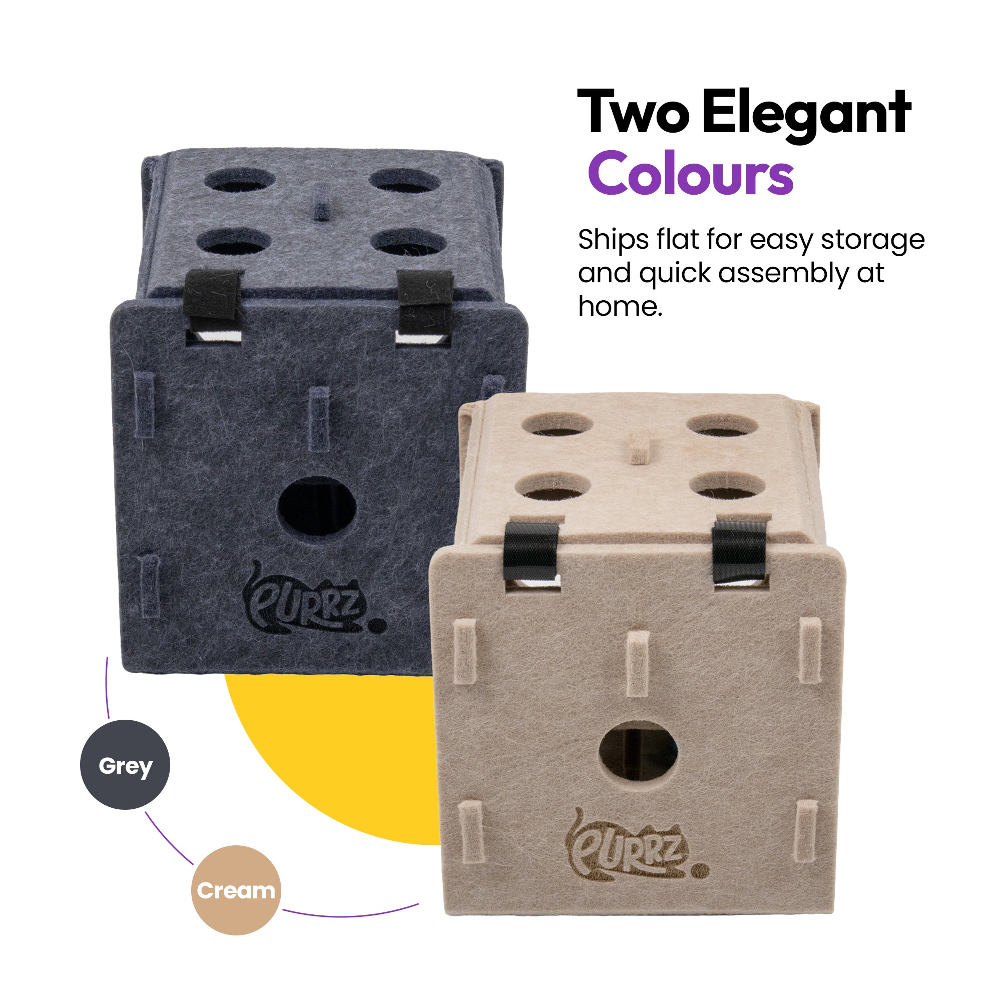 Meet the PURRZ Dice-Shaped Felt Cat Toy – an interactive cube-style play box designed to spark curiosity and keep cats engaged. Built from durable polyester felt and styled in neutral modern tones, it’s the perfect blend of durability, enrichment, and décor-friendly design.