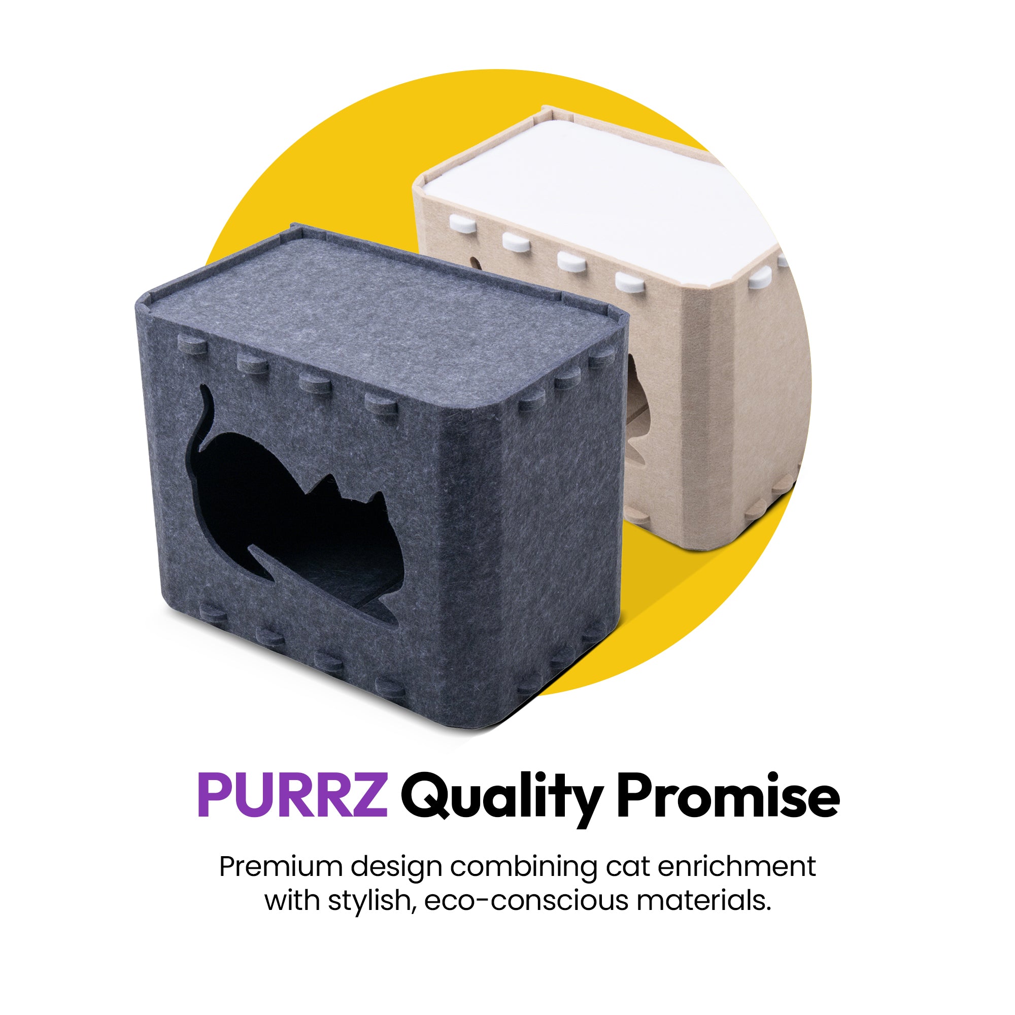 The PURRZ Logo Rectangle Cat House isn’t just a cat bed – it’s modern pet furniture designed for feline happiness and home harmony. Simple, elegant, and irresistibly cozy. 🐱💛