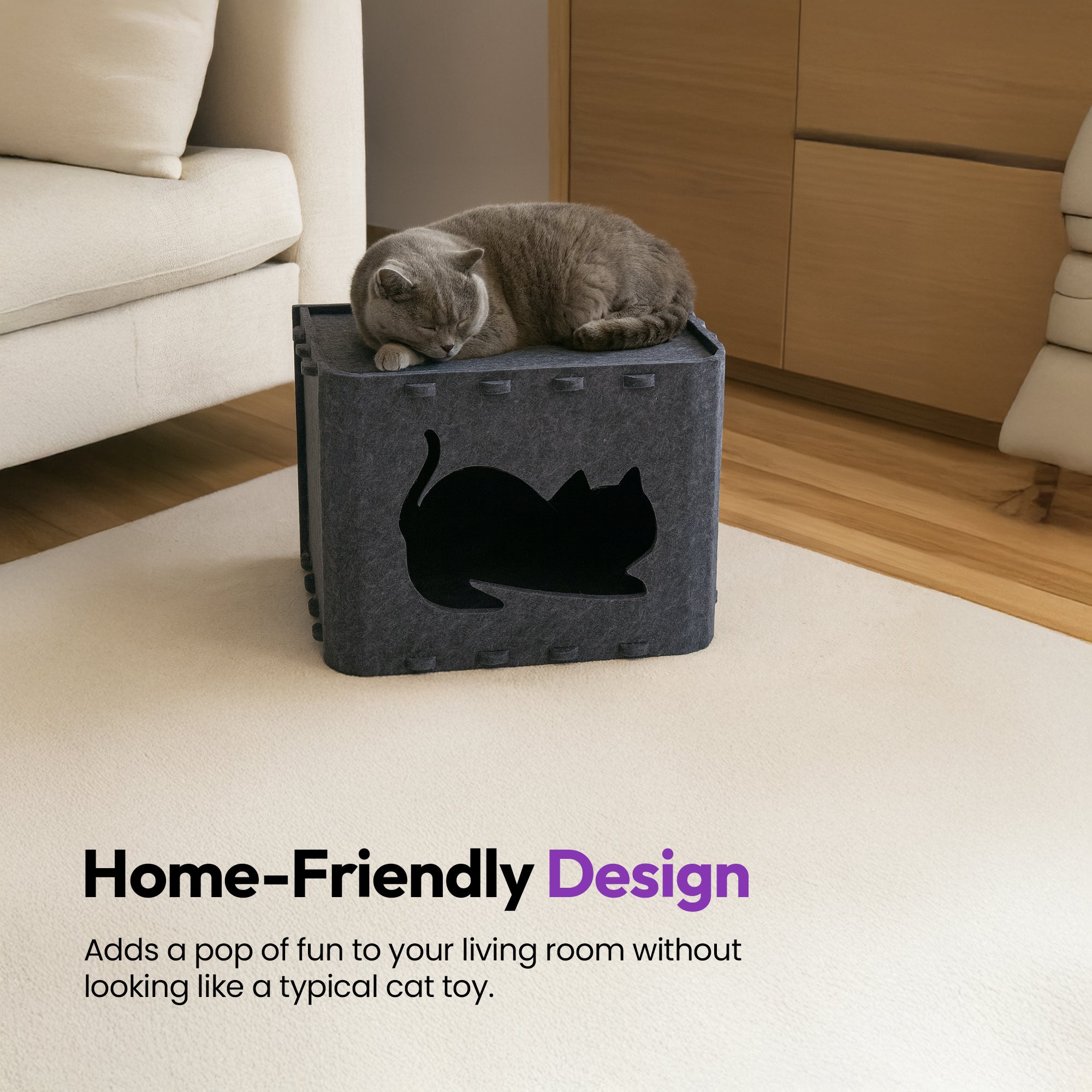 The signature cat-shaped logo cutout doubles as a playful entryway and design statement. - ✔️ Durable Felt Construction 🧵