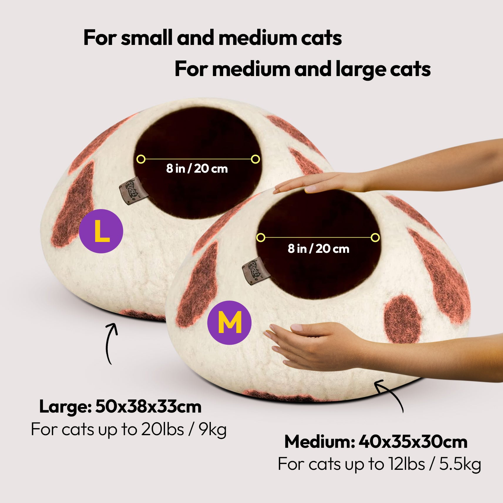 Introducing the PURRZ Premium Calming Mochi Felt Cat Cave Bed — the ultimate blend of comfort, style, and feline wellness. Crafted from ultra-soft, felted Merino wool, this elegant cat pod bed offers a warm and secure hideaway for cats who crave coziness, privacy, and peace. Whether used for napping, nesting, or hiding, it’s the perfect indoor cat sanctuary. 😽🧶