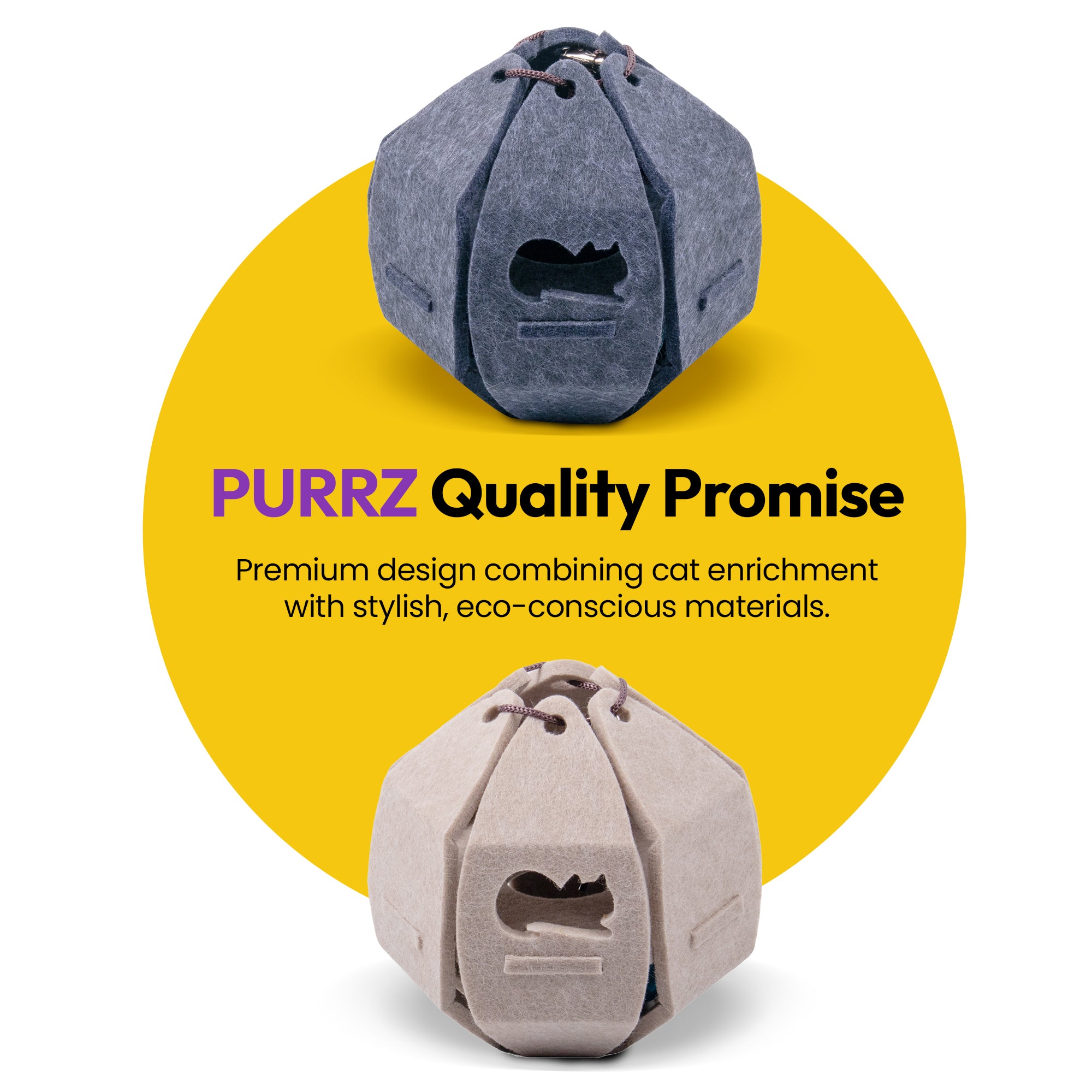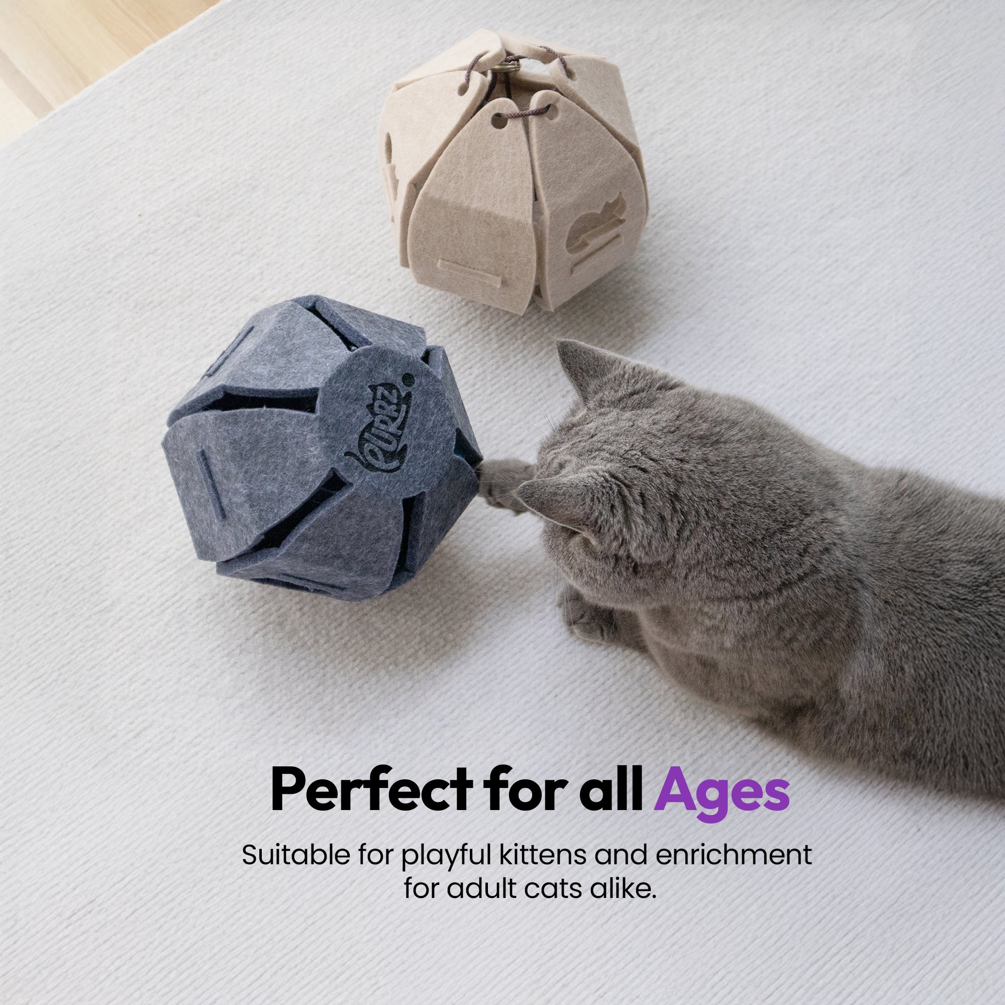 Whether your cat is chasing sounds, exploring textures, or batting through the openings, the PURRZ Abstract Felt Ball Cat Toy provides healthy exercise and pure feline joy — all wrapped in a design-conscious package you’ll love to keep on display. 🐱💛