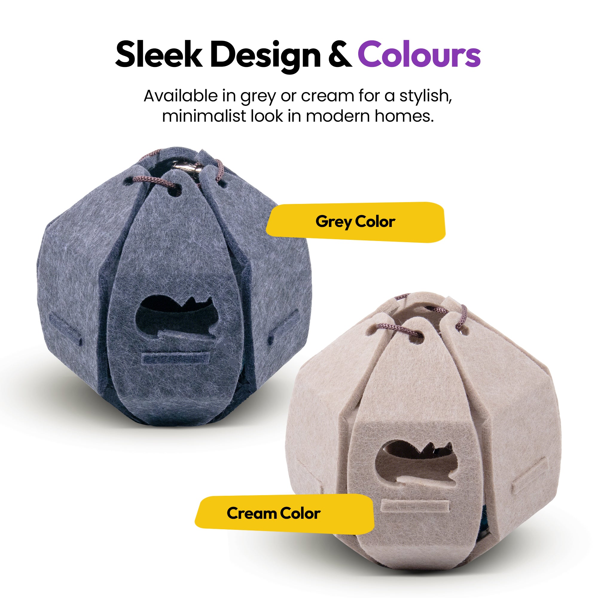 Bring modern design and feline fun together with the PURRZ Abstract Felt Ball Cat Toy – an interactive orb-shaped toy crafted to keep cats curious, active, and happy. Made from durable polyester felt, it combines lasting quality with sleek, minimalist style in neutral grey or cream.