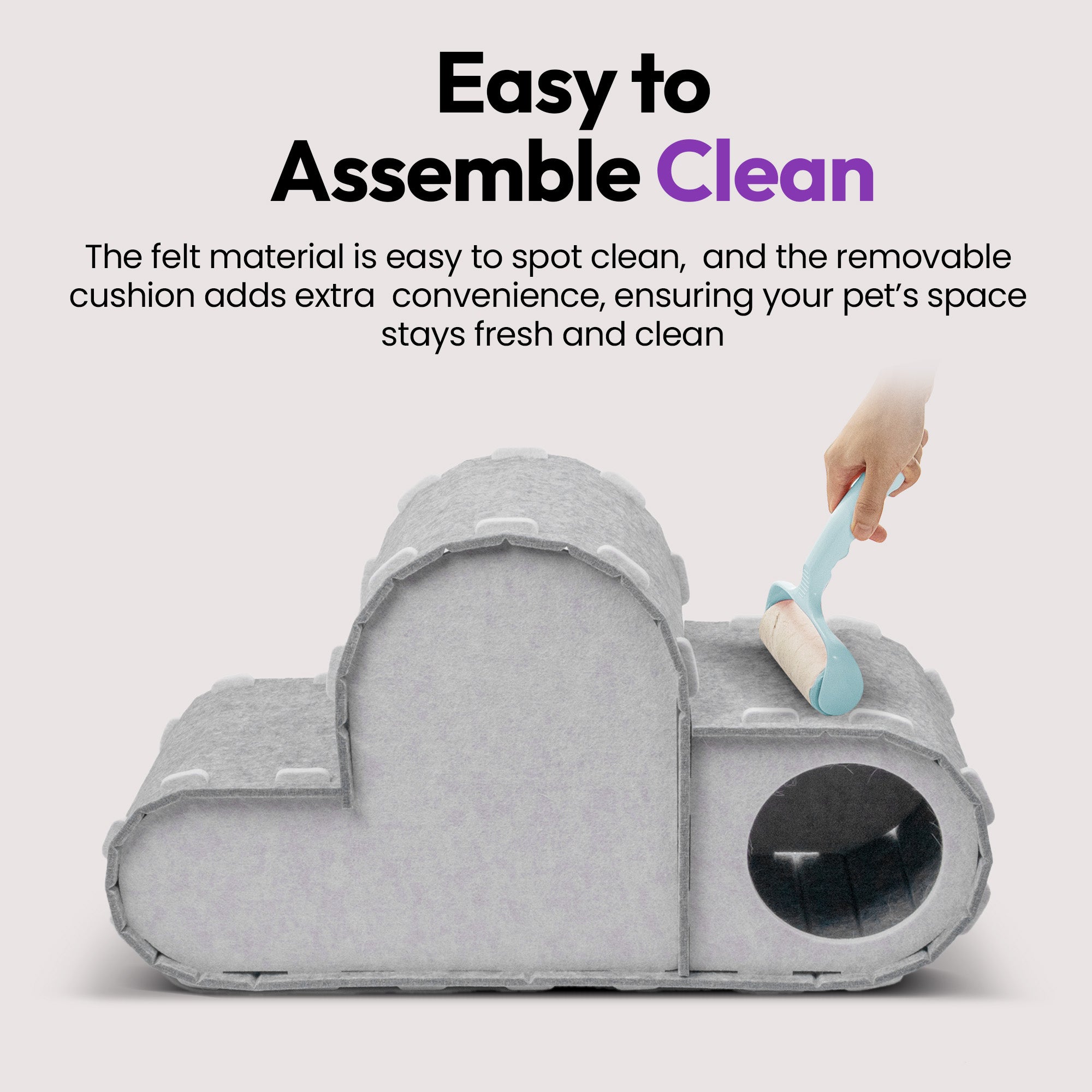This flat-packed felt cat house is easy to assemble and disassemble with no tools required. It's portable and compact, making it perfect for any room or travel.