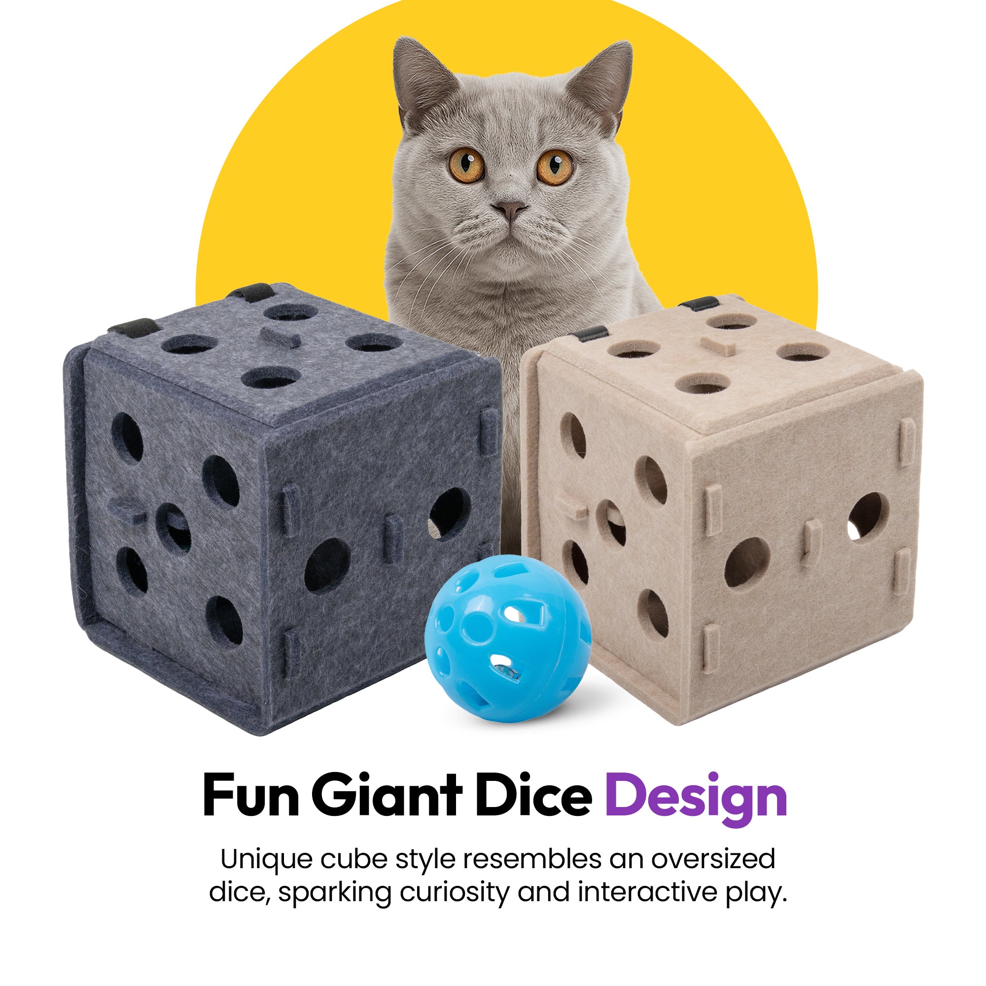 Unlike traditional cat toys, this playful cube resembles a giant dice, offering a brand-new shape for cats to explore and interact with. - ✔️ Built-In Bell Ball 🔔