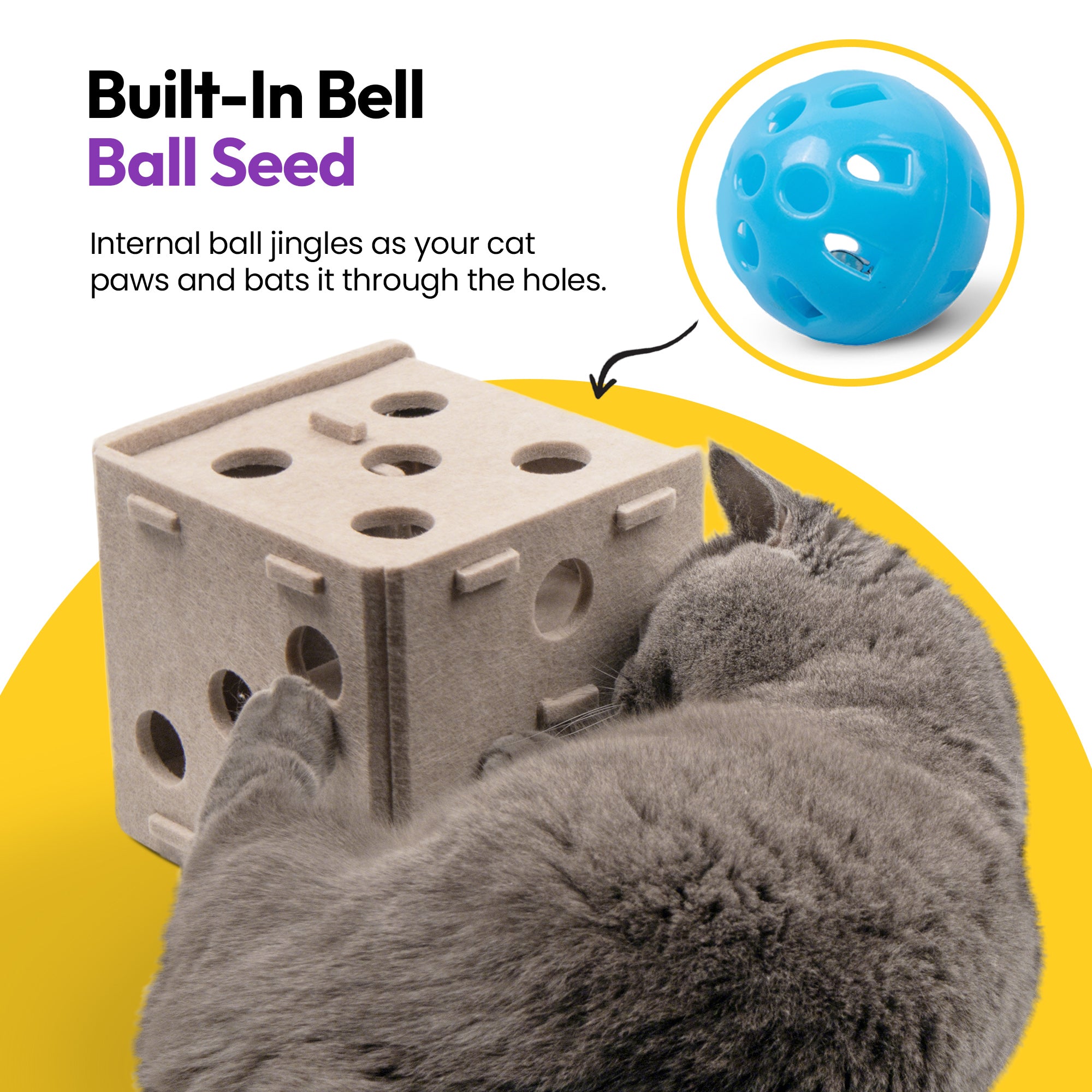 A jingling ball rolls and rings inside the cube as your cat paws at it, creating stimulating sound and movement to capture their attention for hours. - ✔️ Multiple Paw Holes 🐾