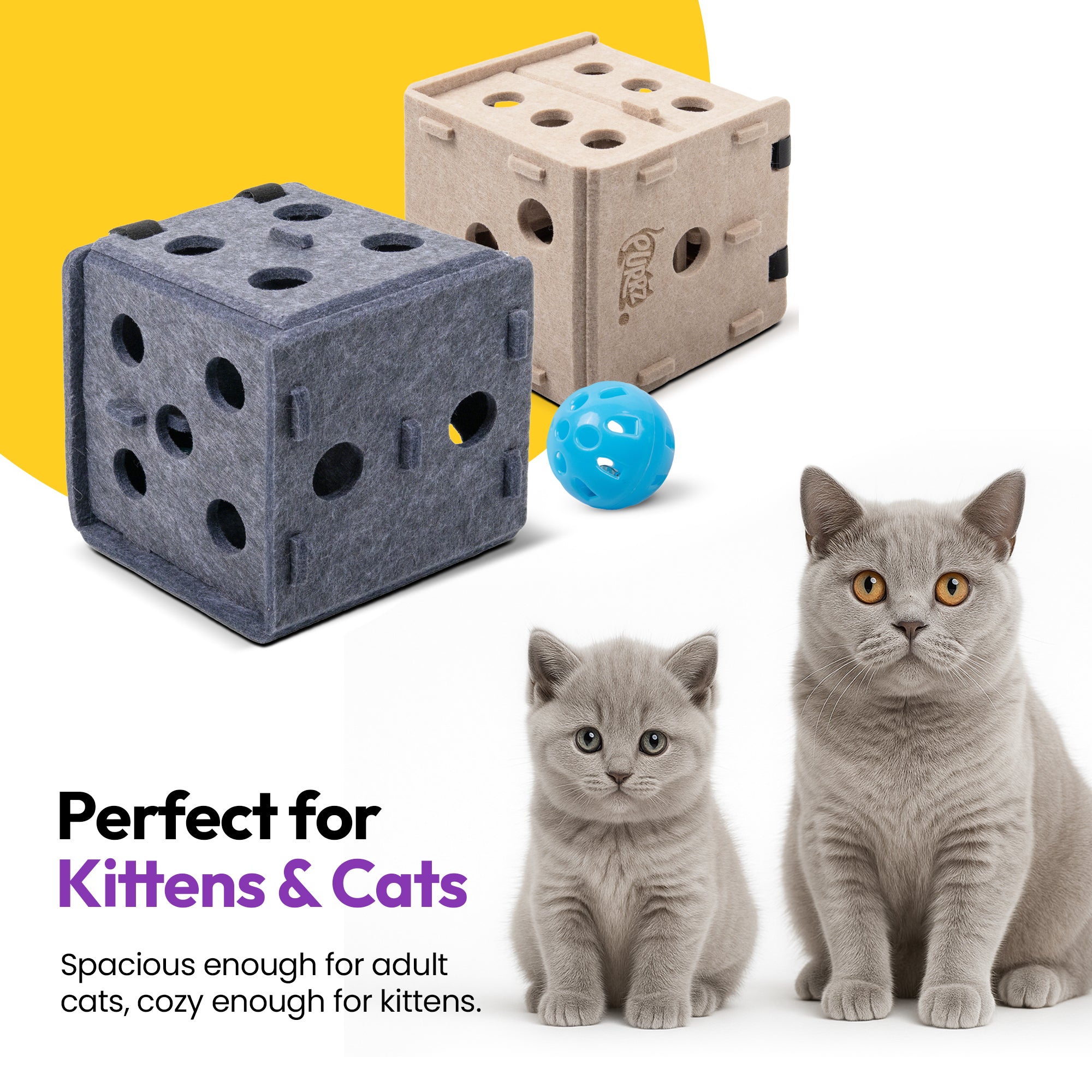 Meet the PURRZ Dice-Shaped Felt Cat Toy – an interactive cube-style play box designed to spark curiosity and keep cats engaged. Built from durable polyester felt and styled in neutral modern tones, it’s the perfect blend of durability, enrichment, and décor-friendly design.