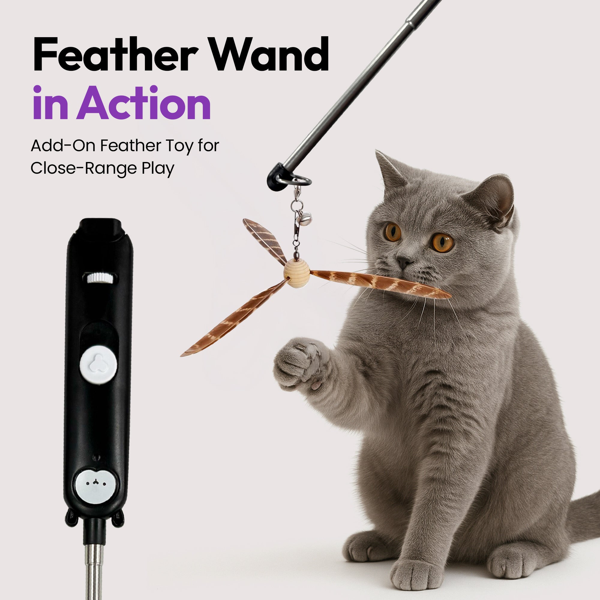 Telescopic handle lets you attach a toy or teaser for hands-on play. Ideal for bonding time, especially with shy or senior cats. 💞🐾