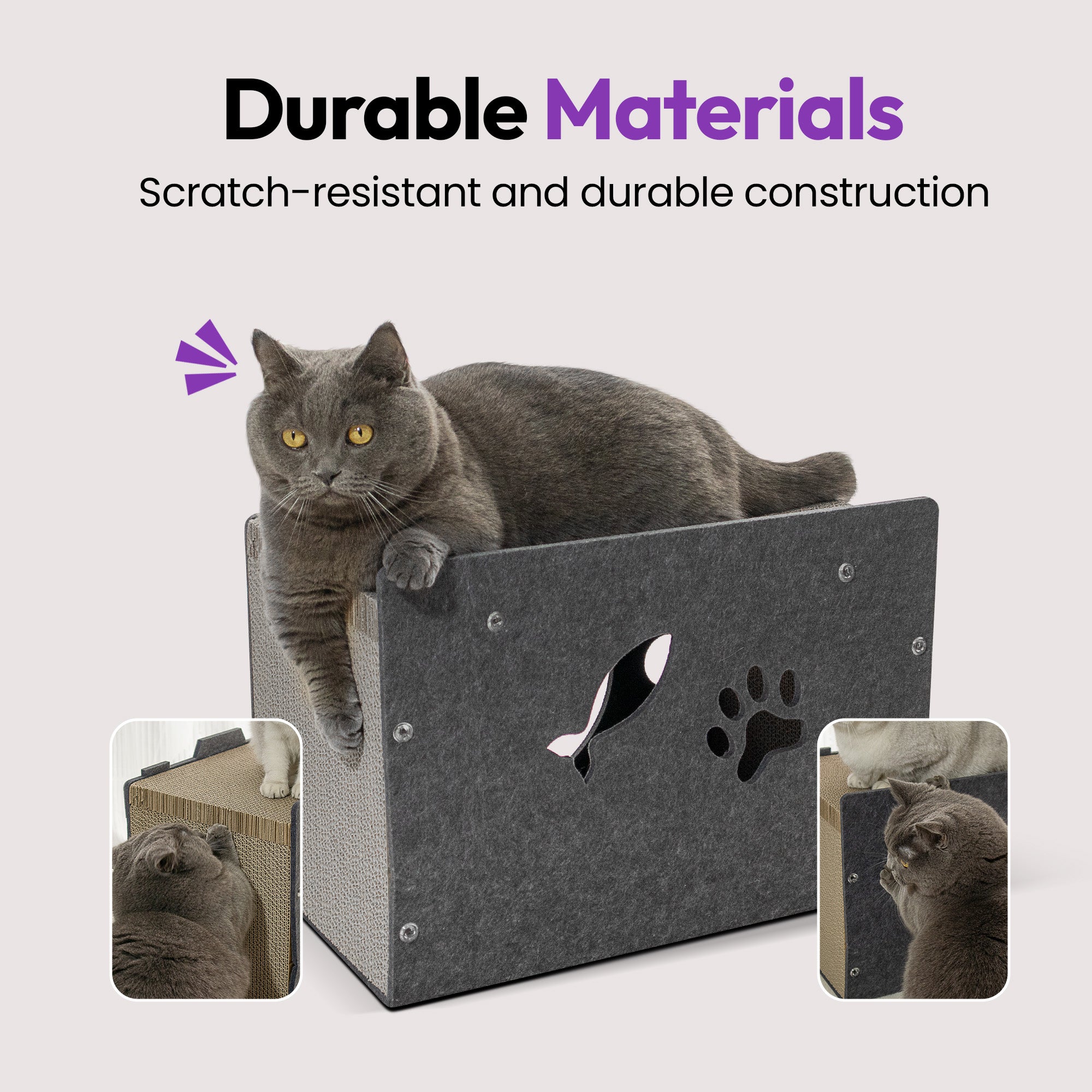 • 🧶 Durable Felt & Corrugated Cardboard: Built for hours of pouncing, clawing, and curling up. Purrfect for 猫抓板 and nesting!