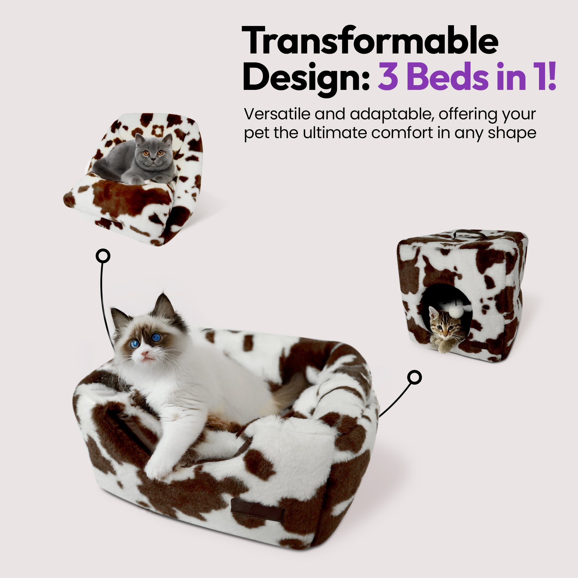 🧊 PURRZ 3-in-1 Foldable Cat Cube Bed Cave – Cozy, Private, & Stylish! 🐾