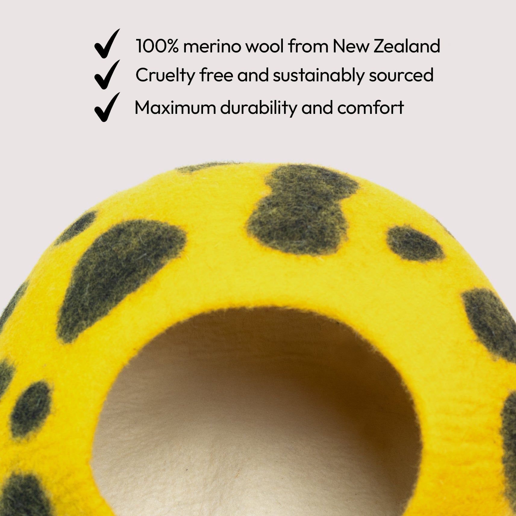 Each cave is individually hand-felted in Nepal by skilled artisans, ensuring exceptional durability, unique character, and eco-conscious construction.