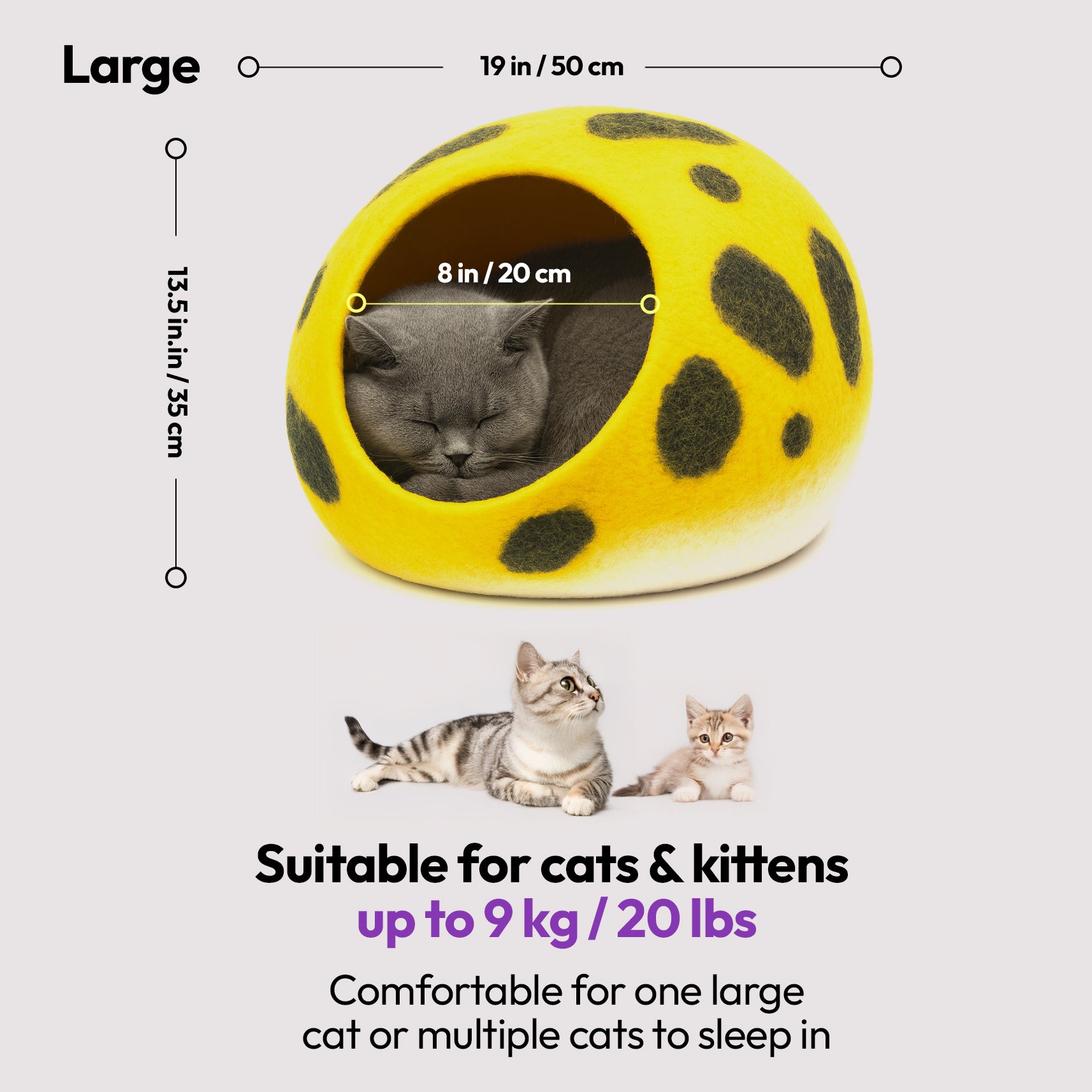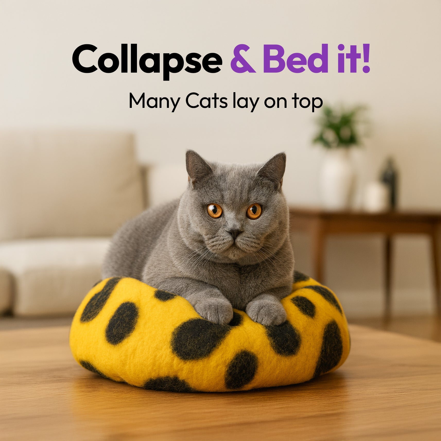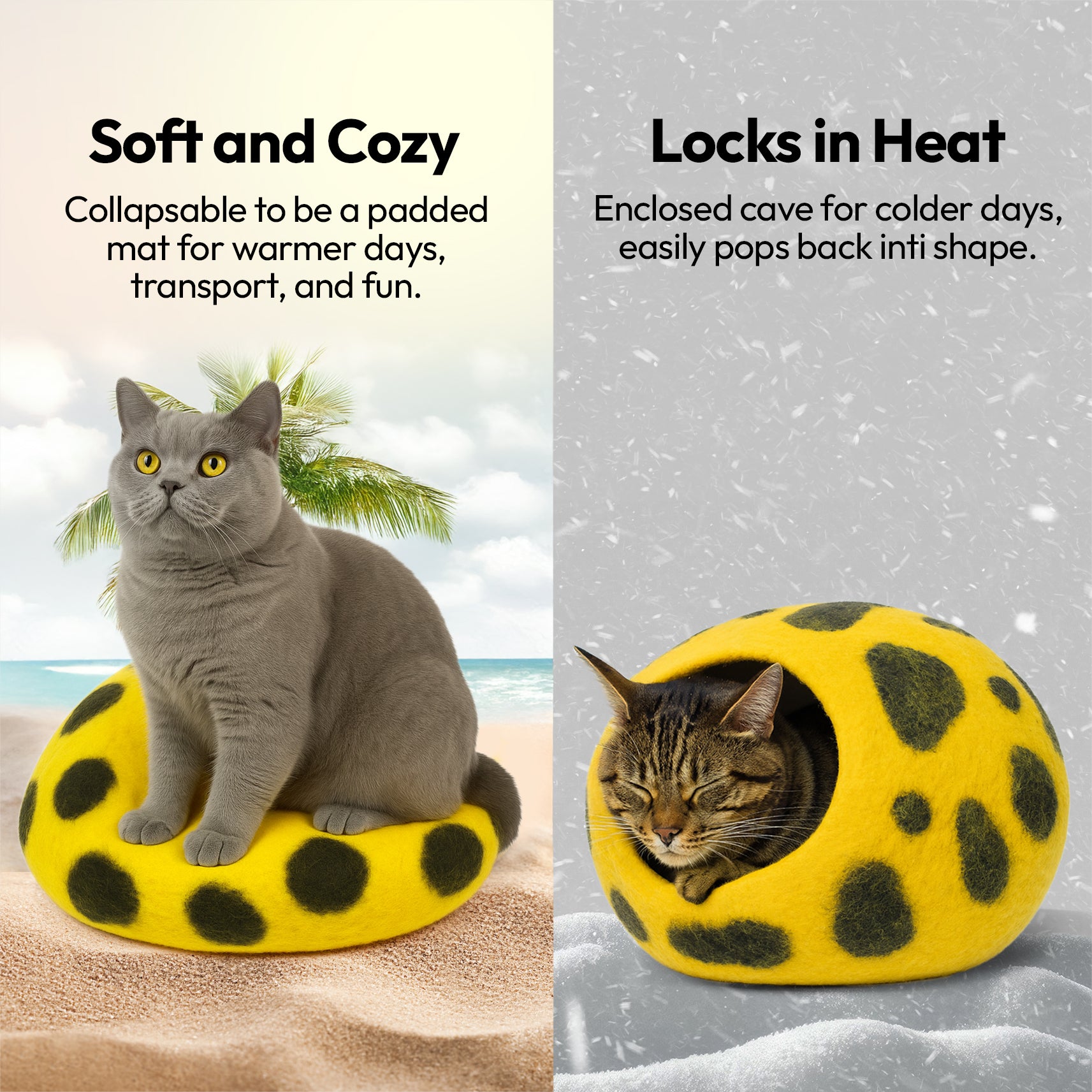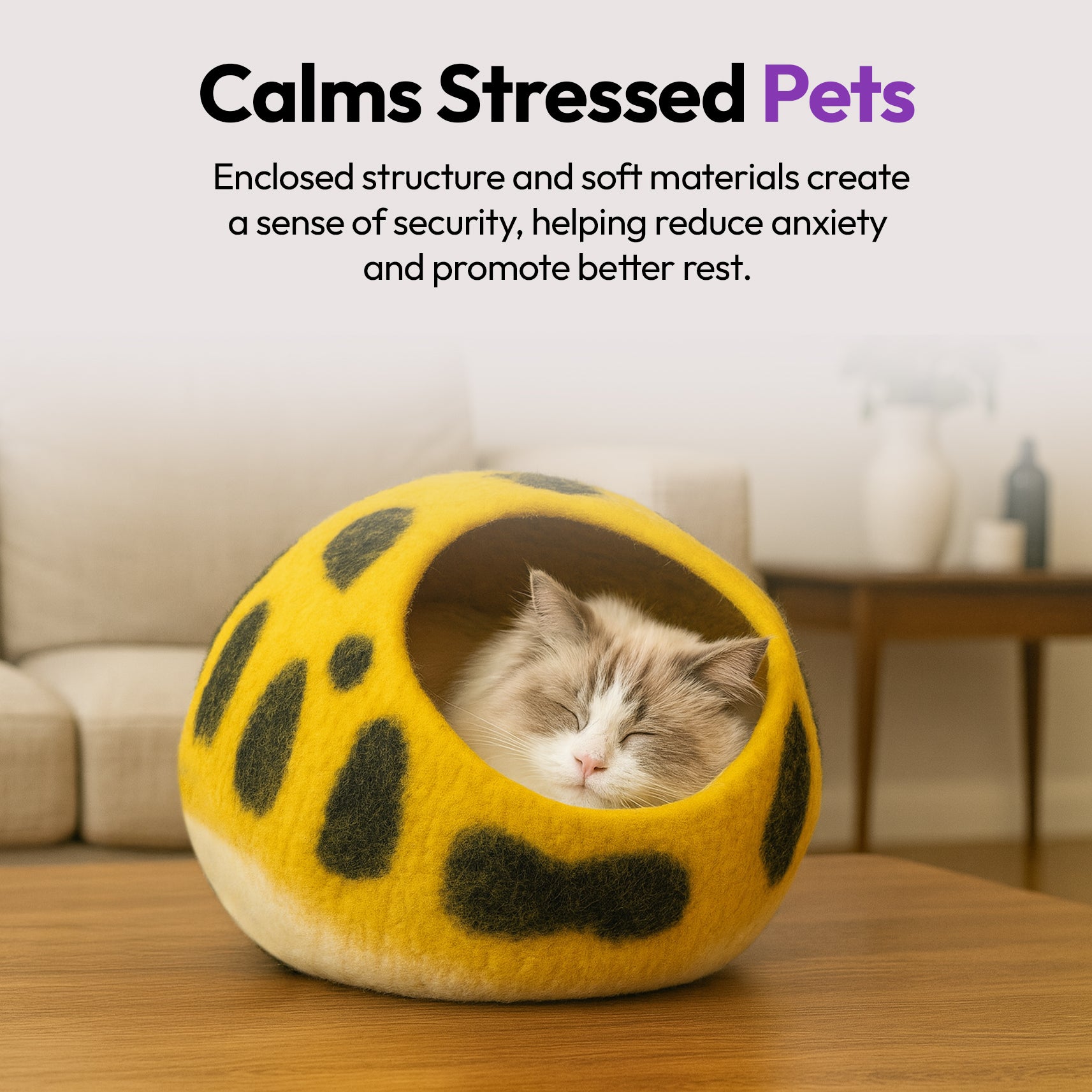 Wool keeps cats warm in winter and cool in summer—perfect for all climates and indoor environments.
