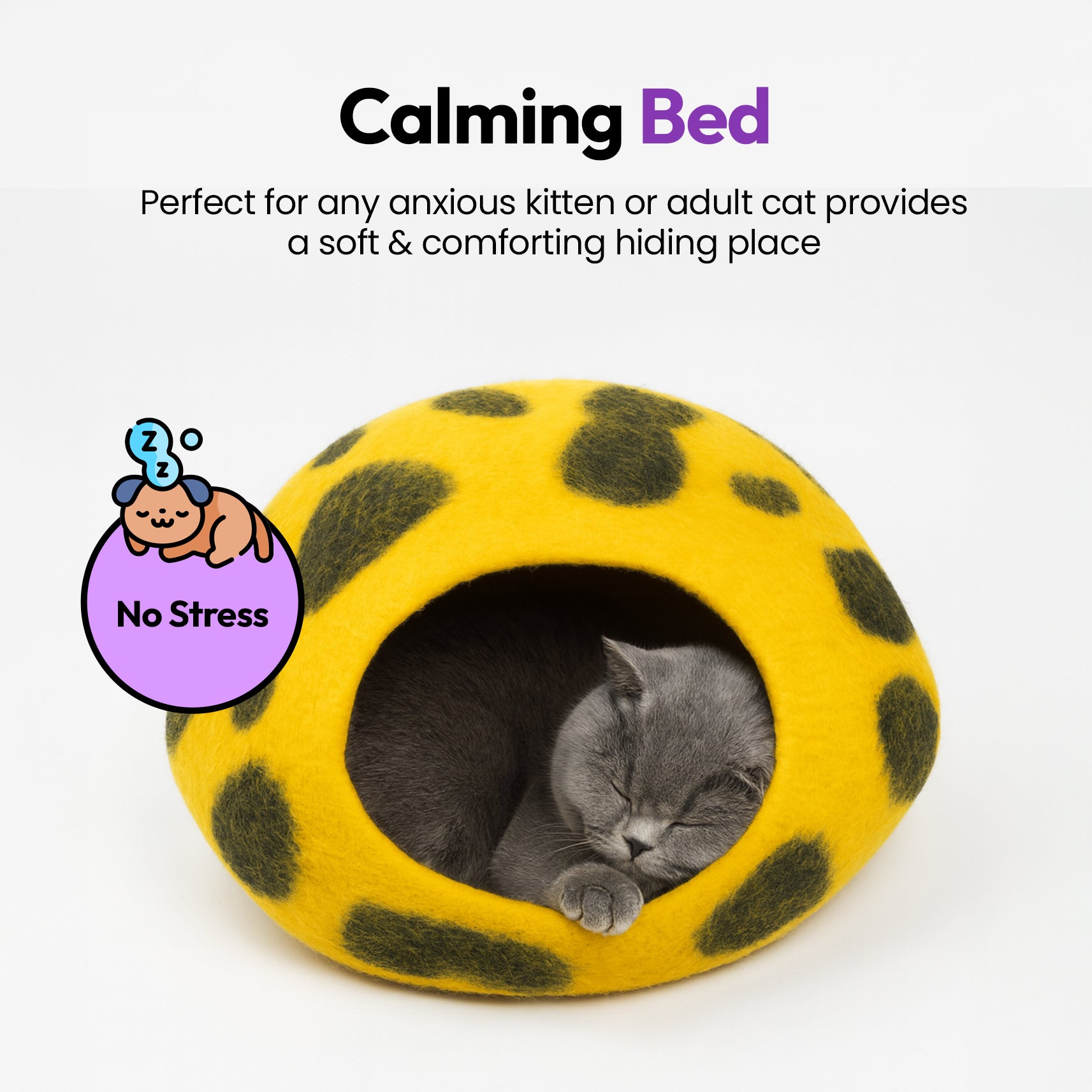 使用我们的 PURRZ 生态舒缓猫洞床提升您猫咪的舒适度!