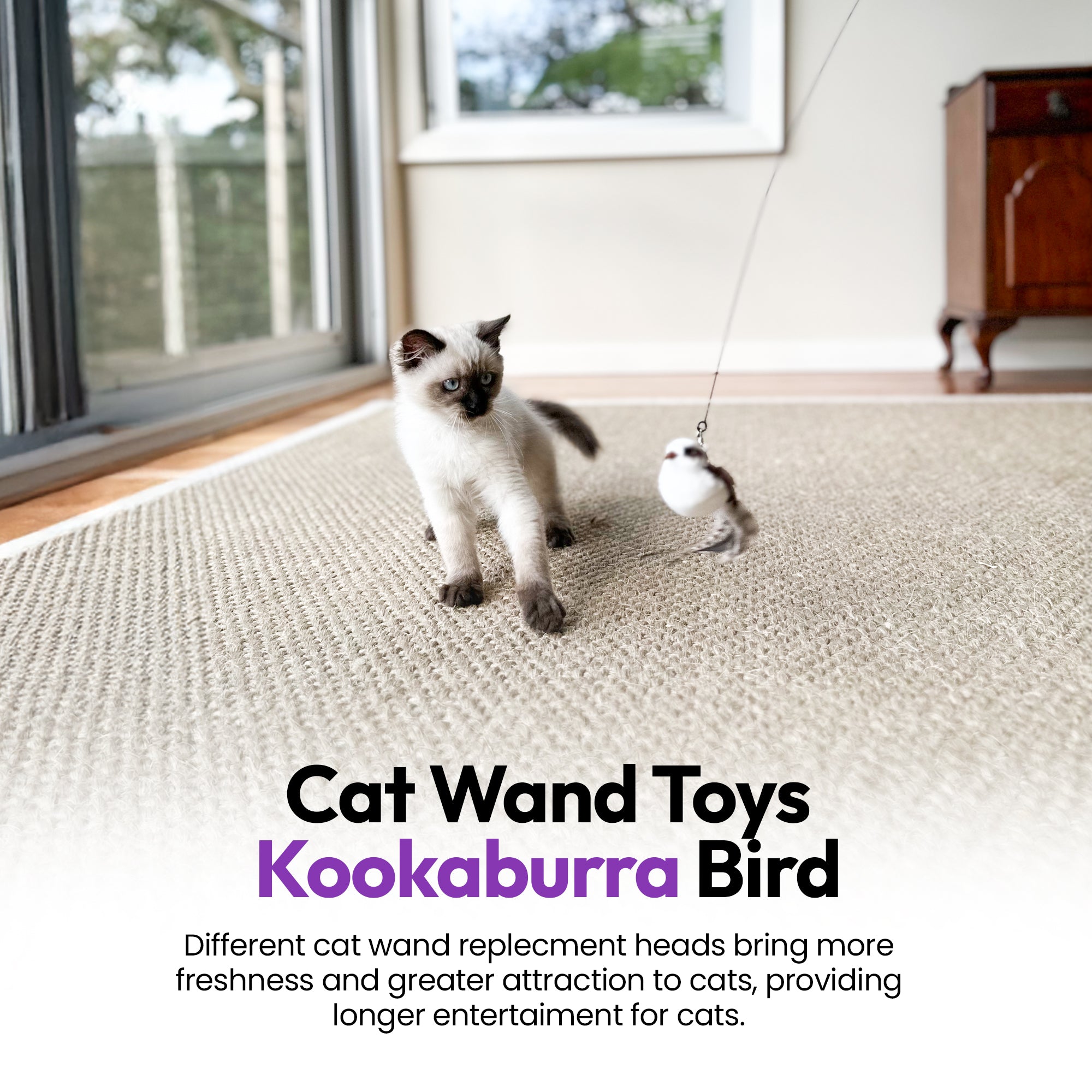 Crafted to mirror the movement and look of real prey, the kookaburra-style feathers trigger your cat’s inner hunter for instinctual fun. 🐦💨