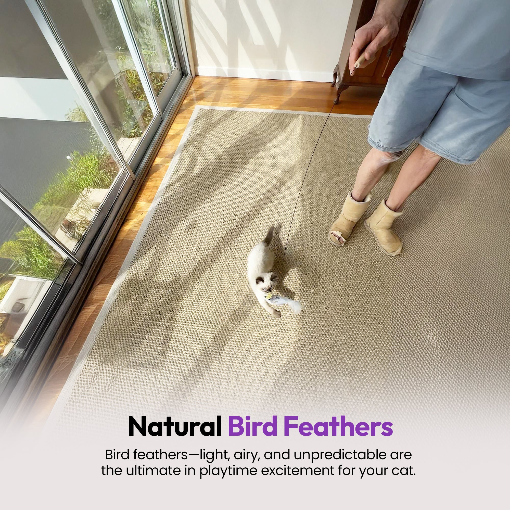 Lightweight yet sturdy — for swooping, fluttering, teasing play that’s irresistible to even the laziest of lap cats! 🛋️➡️🏃♂️