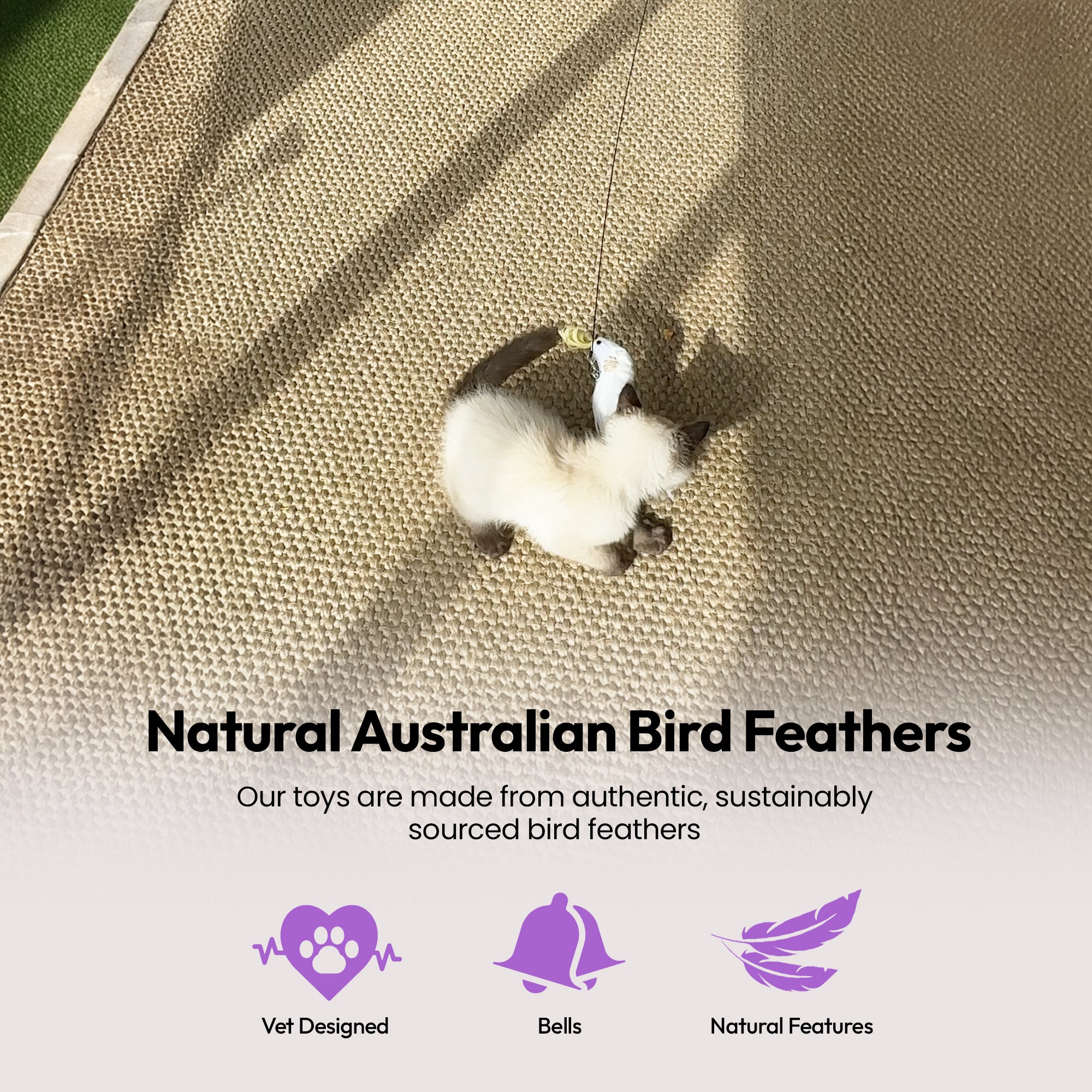cat feather wand toy, natural cat teaser, cockatoo feather wand, vet-designed cat toy, cat exercise toy, PURRZ wand toy, interactive cat play, Australian bird feather toy, safe cat toys, cat toy for enrichment, wand toy with refill, eco-friendly cat toy