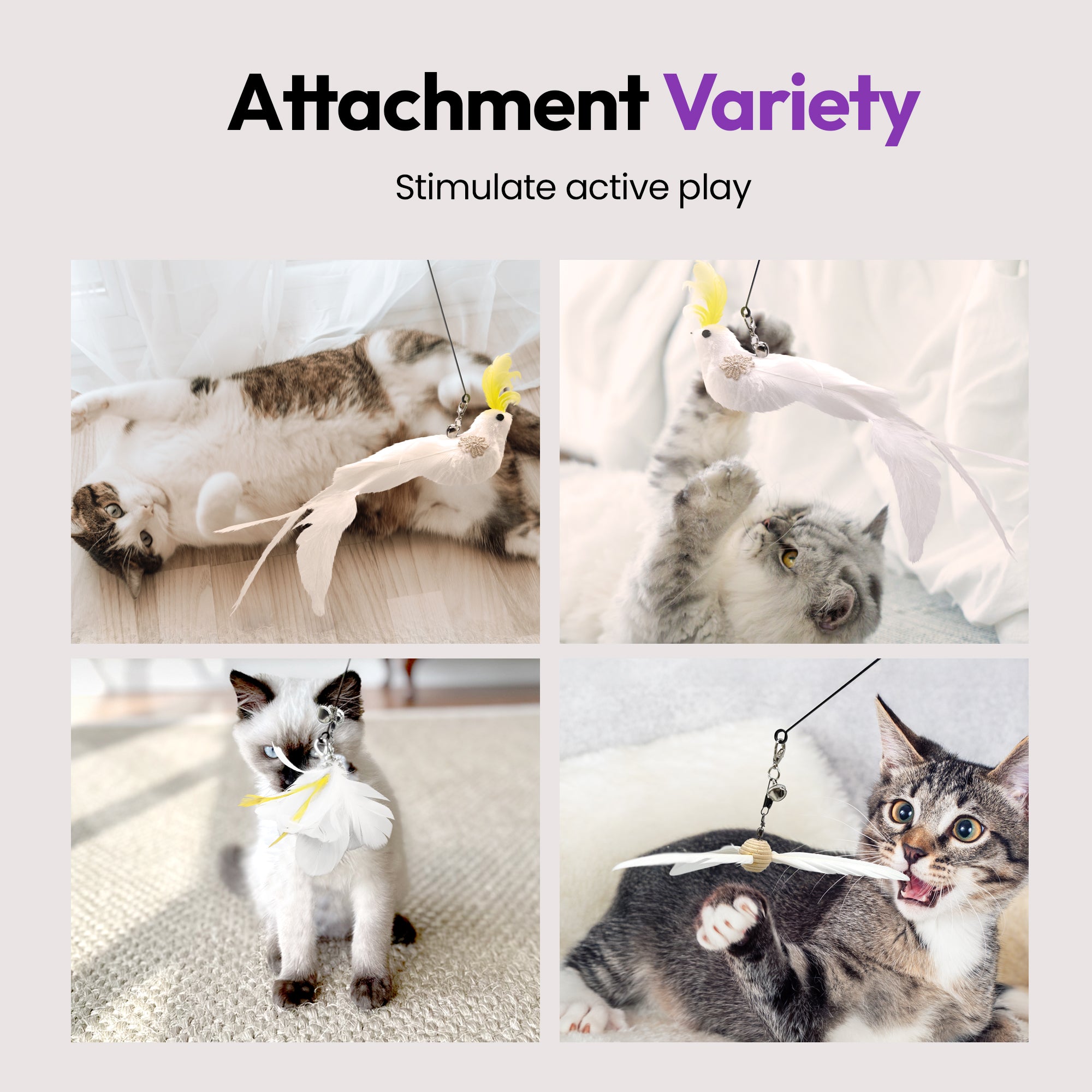 Variety keeps cats engaged! Swap out the natural, fluttery feather ends for new textures and motions that mimic real prey. 🎯💃