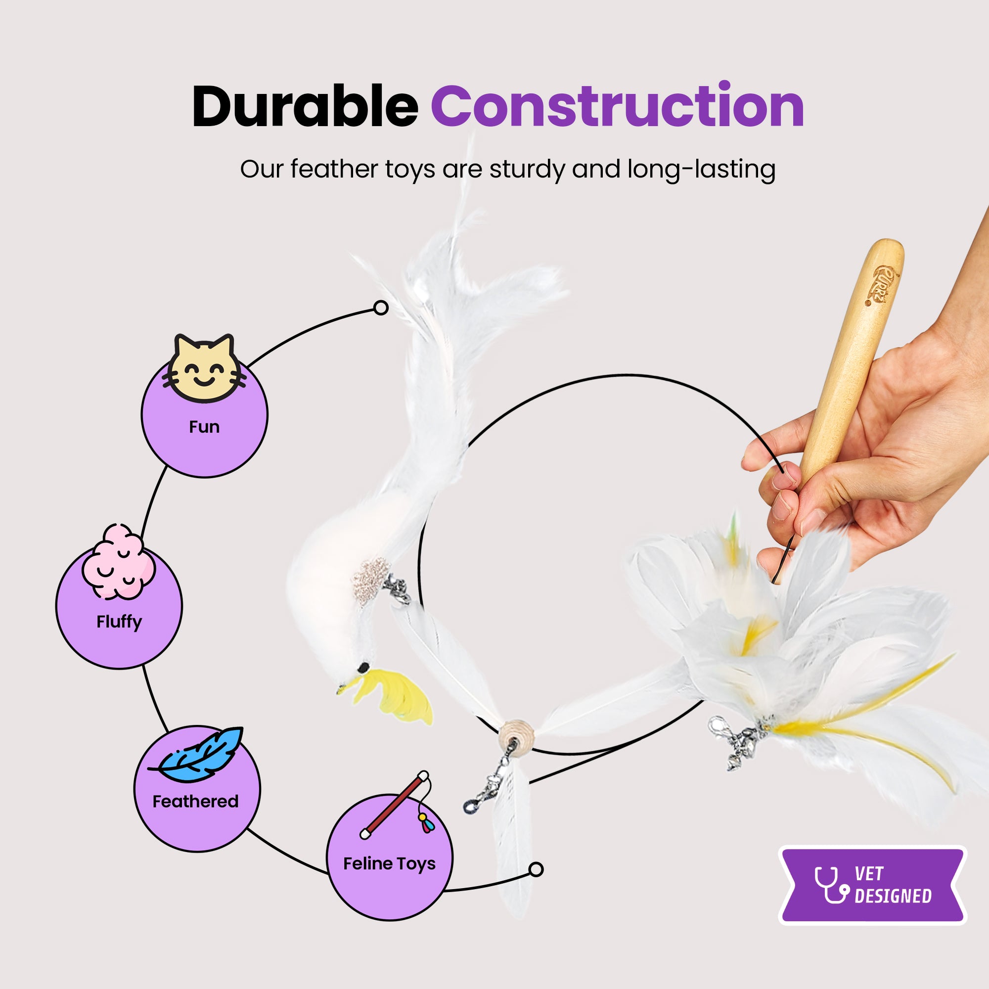 Designed and tested by Dr. Duncan Houston, this wand promotes healthy exercise, bonding, and mental stimulation. Because play should always be purr-fessionally approved. 🧠🐱