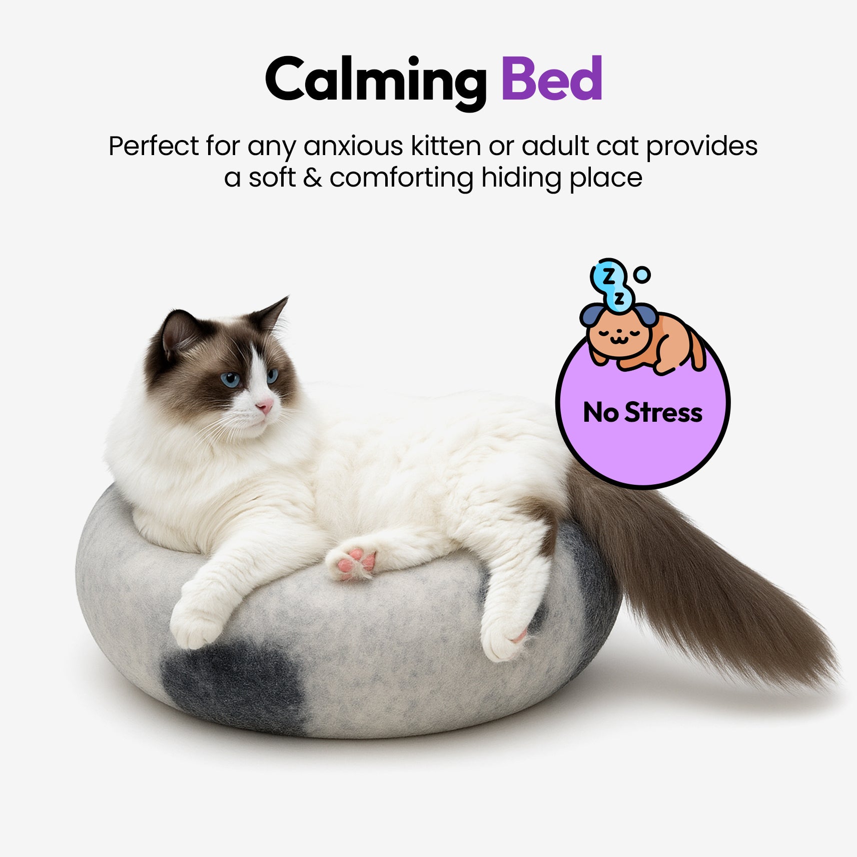 使用我们的 PURRZ 生态舒缓猫洞床提升您猫咪的舒适度!