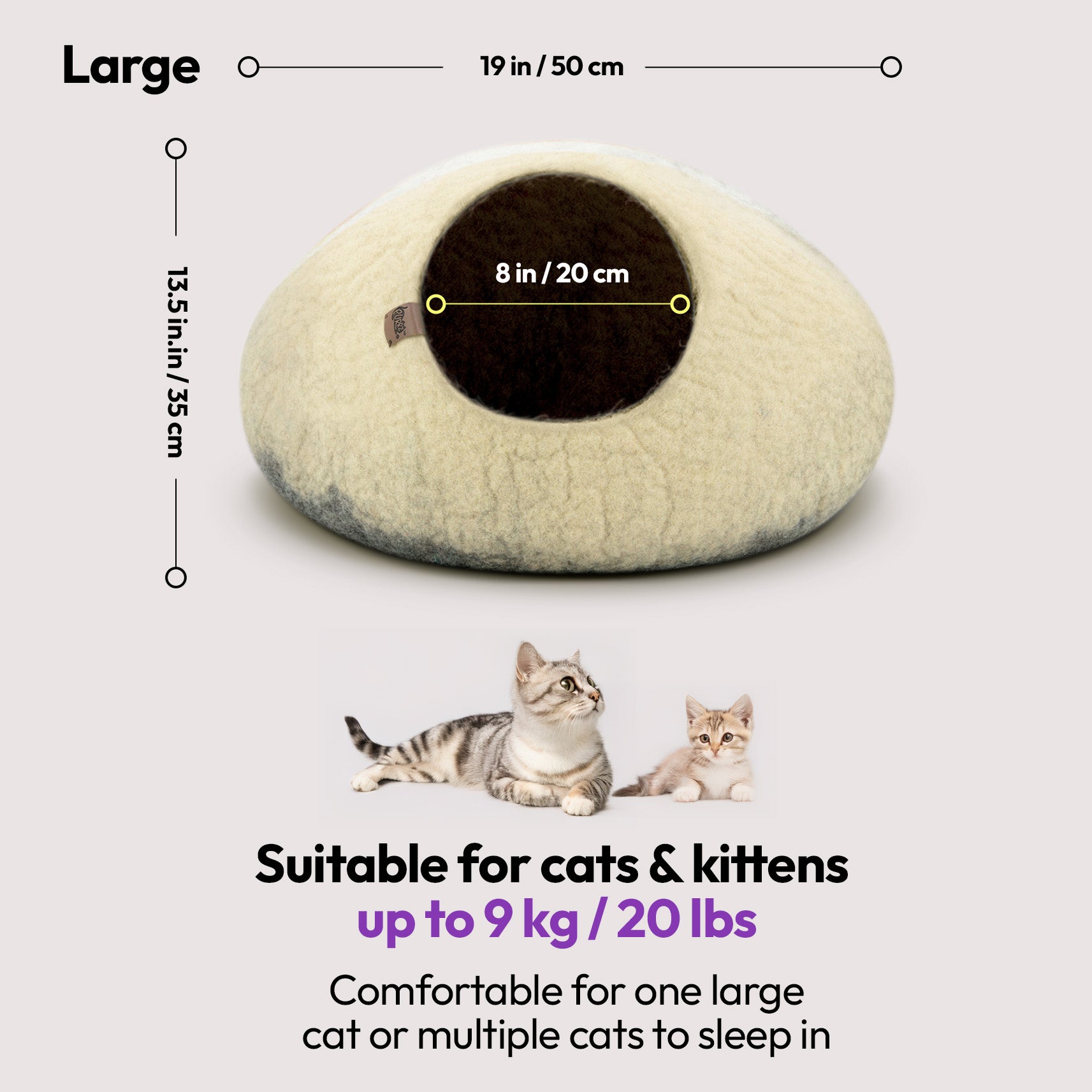 Each cave is individually hand-felted in Nepal by skilled artisans, ensuring exceptional durability, unique character, and eco-conscious construction.