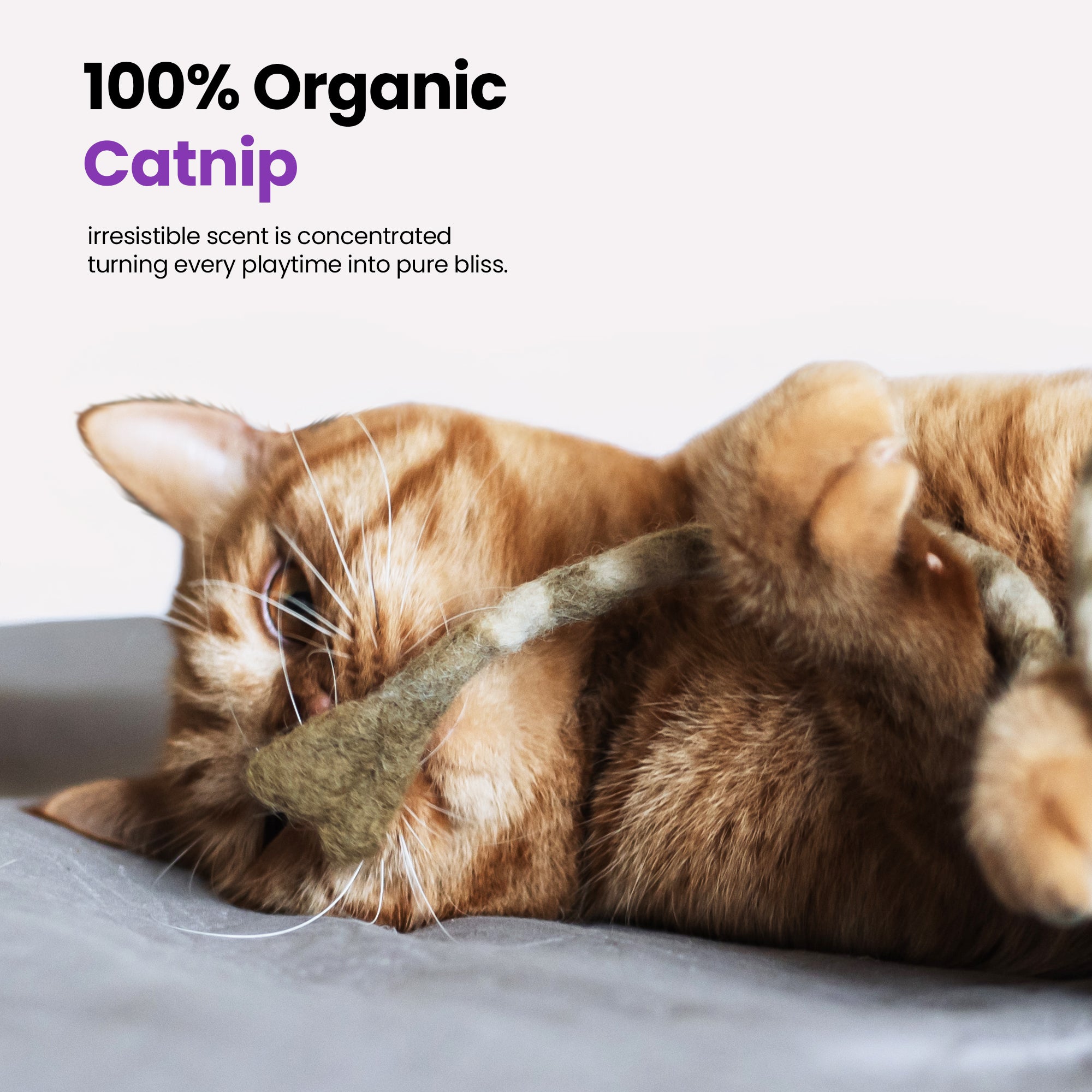 Stuffed with high-potency, organic catnip that encourages instinctive behaviors like pouncing, biting, and bunny kicking — without overstimulation. 🎯