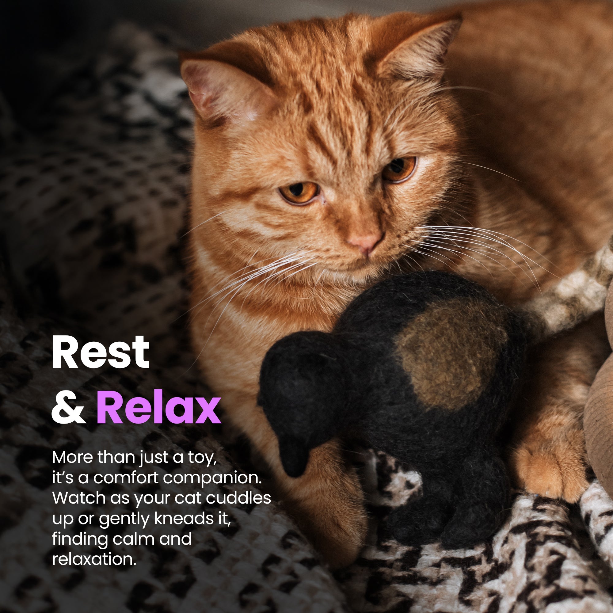 Handmade Merino Wool Catnip Kicker Toy – Lyrebird Shape, Organic Catnip, Vet-Designed