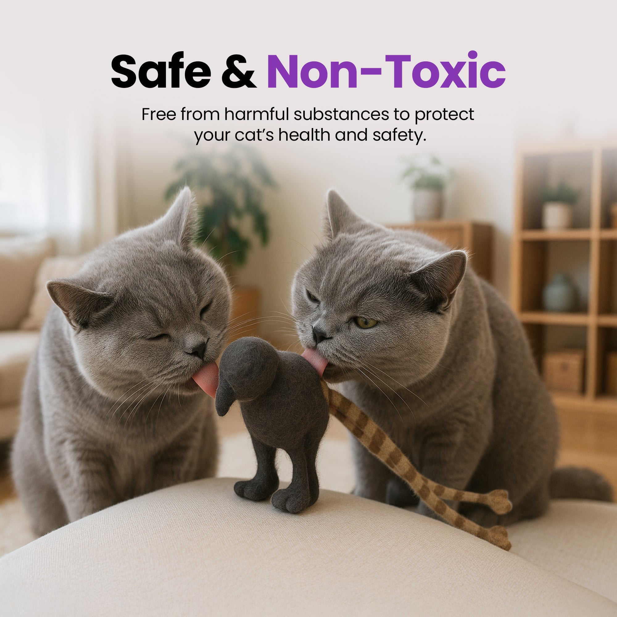 Soft, hypoallergenic, and chemical-free — gentle on teeth and paws while offering a durable, bite-resistant texture that cats love to kick and cuddle. 🐾