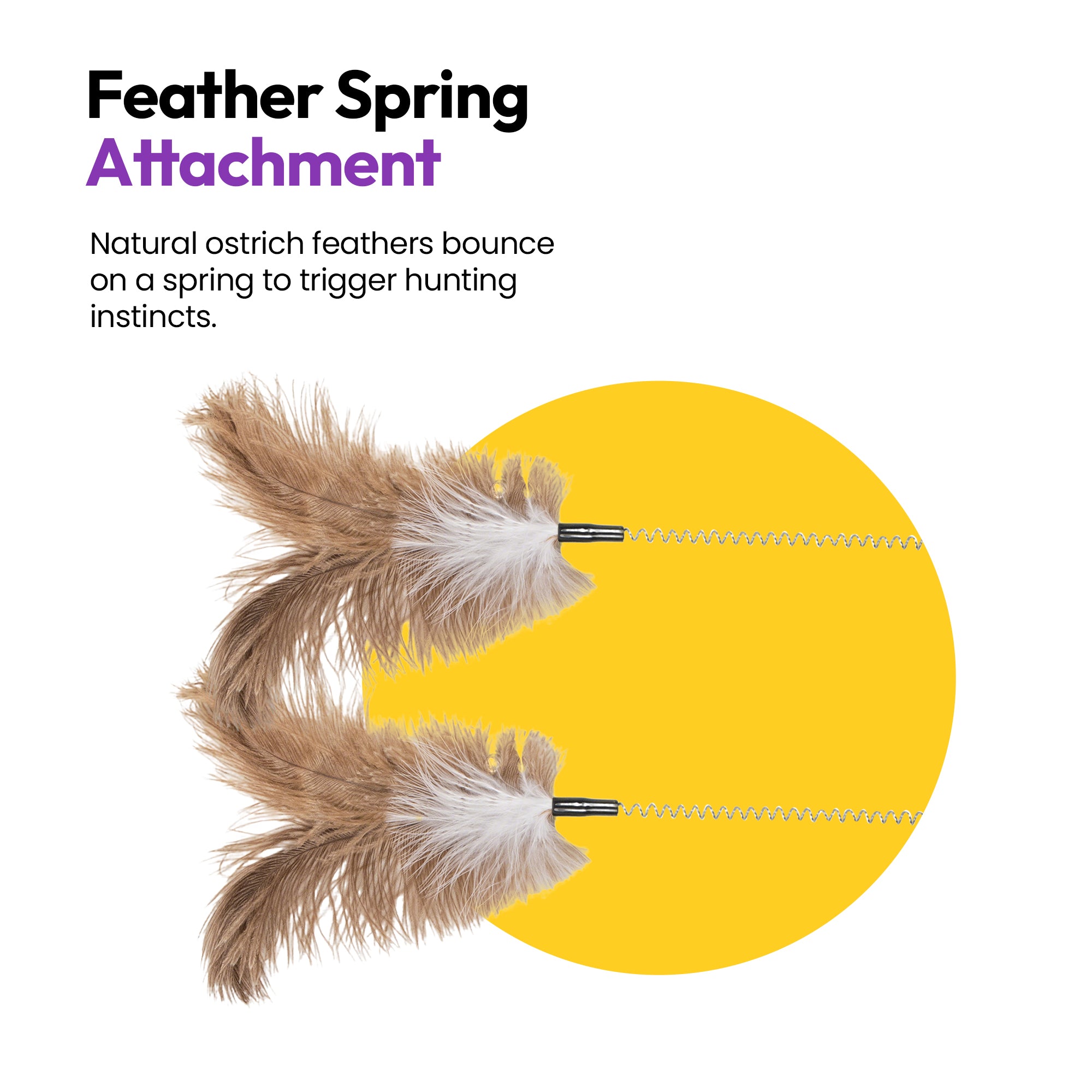 🪶 FEATHER SPRING ATTACHMENT – Natural ostrich feathers bounce on a spring to trigger hunting instincts.