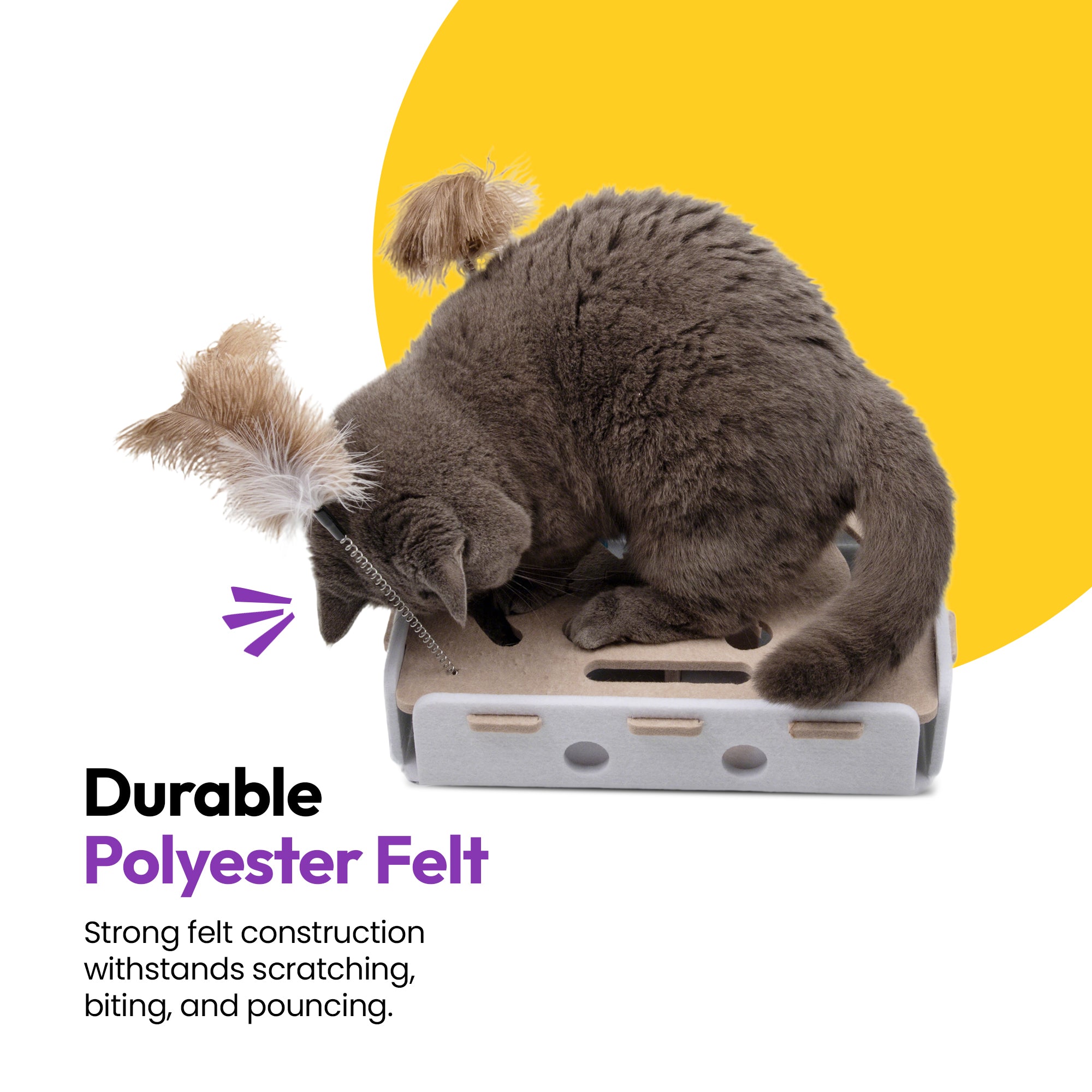 🧵 DURABLE POLYESTER FELT – Strong felt construction withstands scratching, biting, and pouncing.