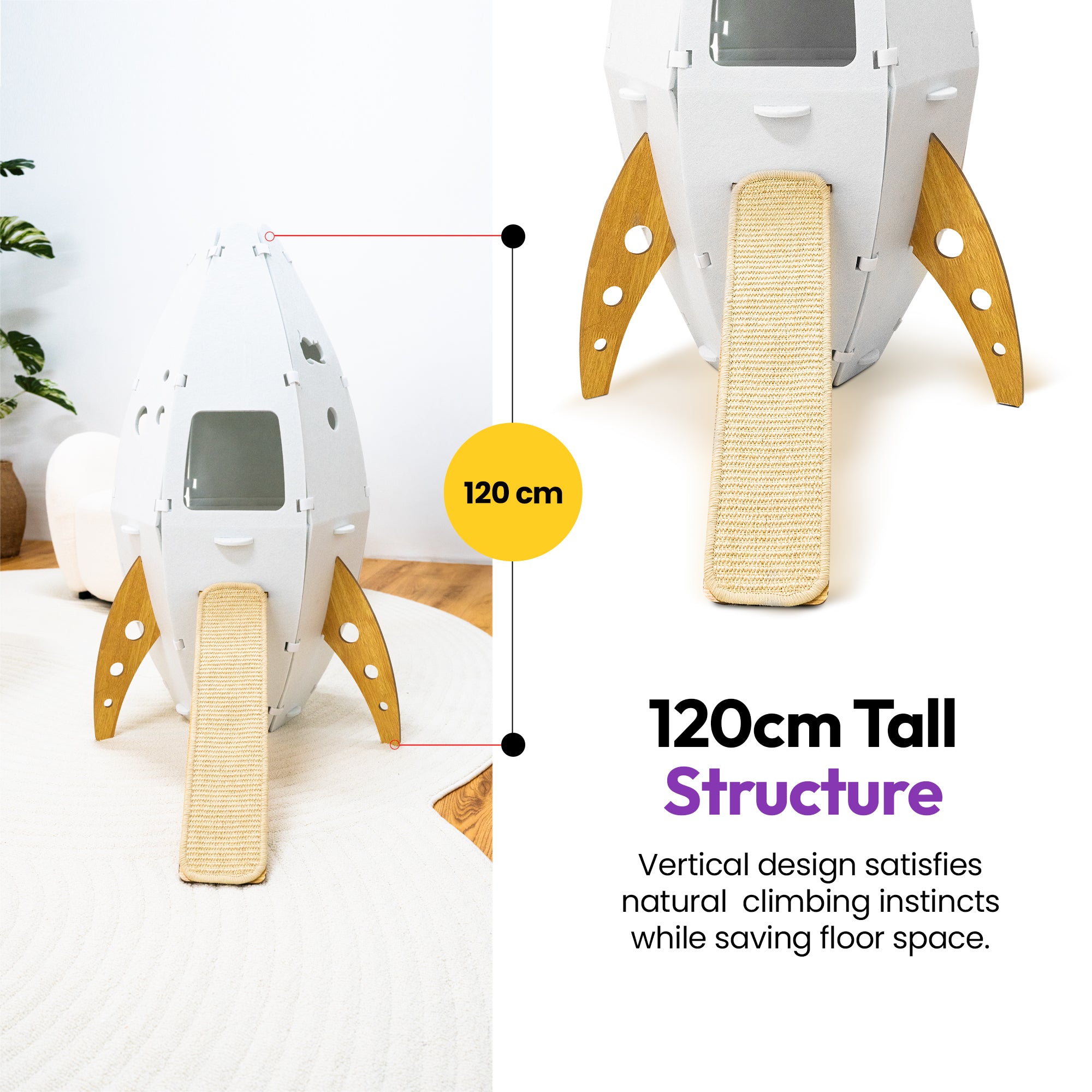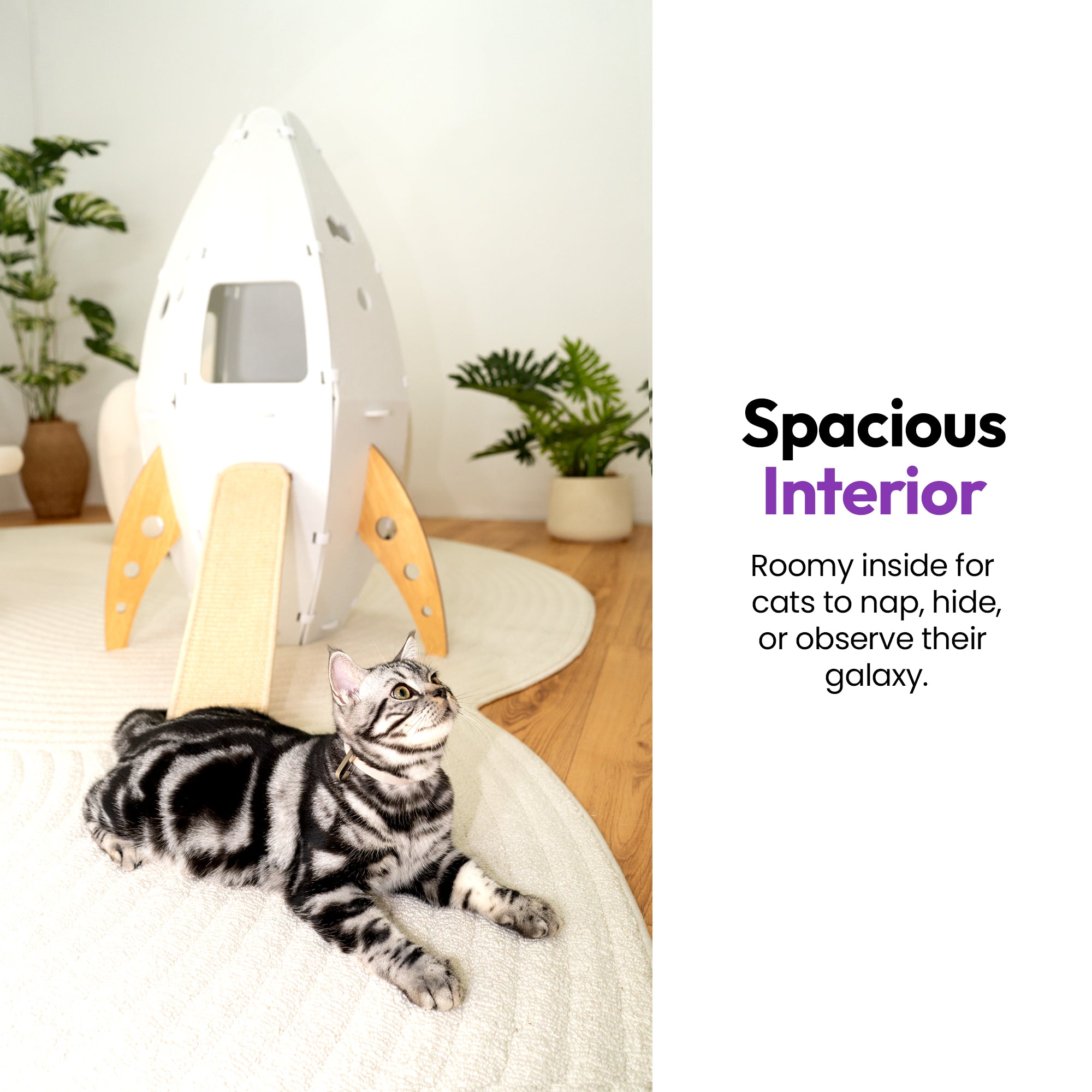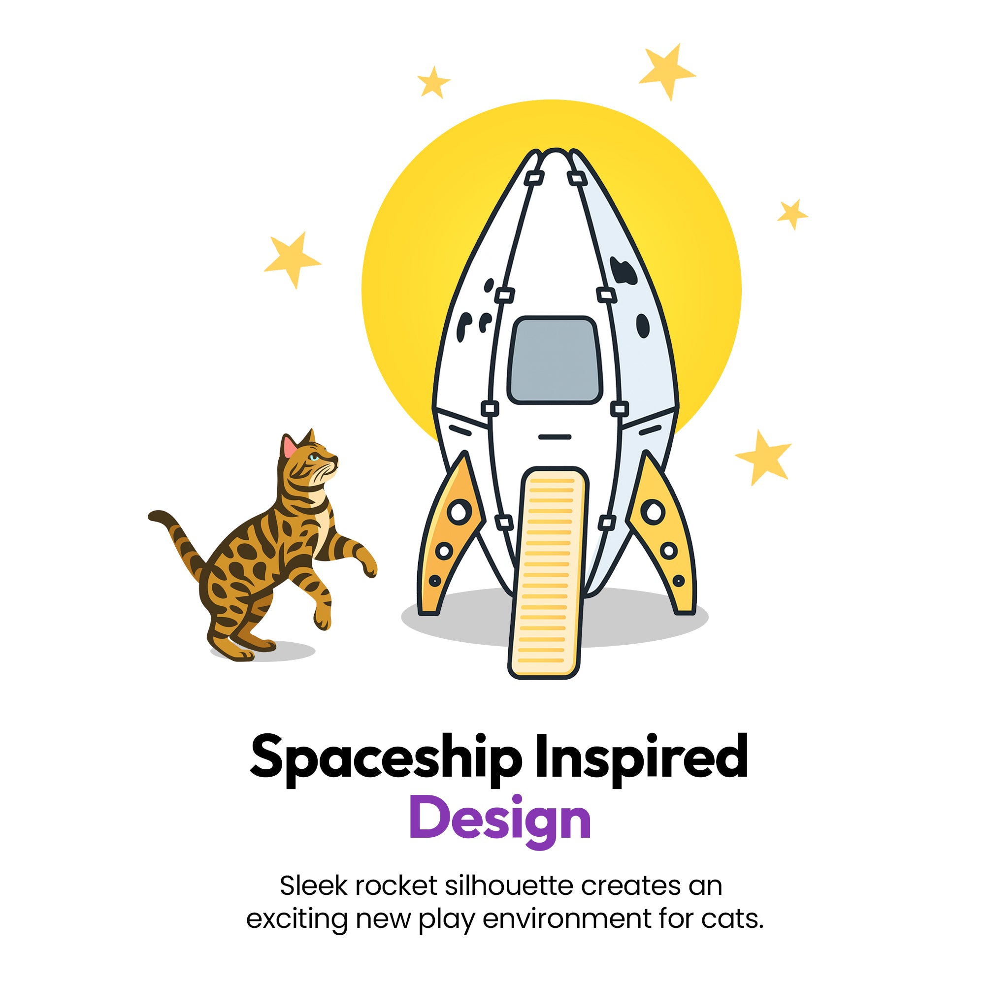 🪐 SPACESHIP-INSPIRED DESIGN – Sleek rocket silhouette creates an exciting new play environment for cats.