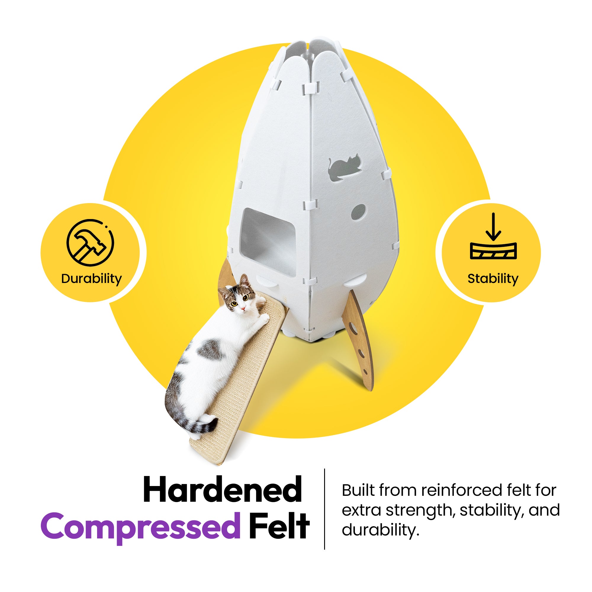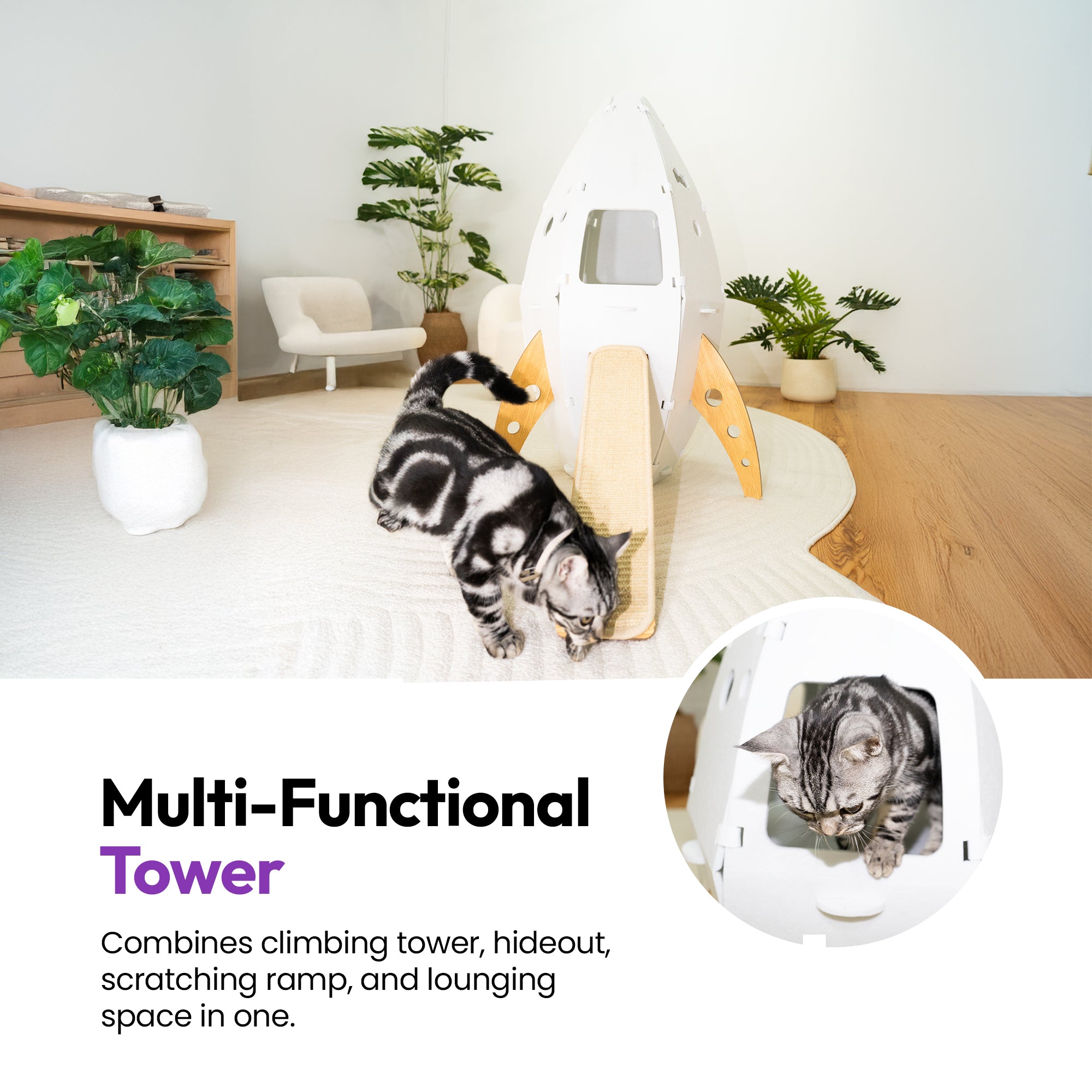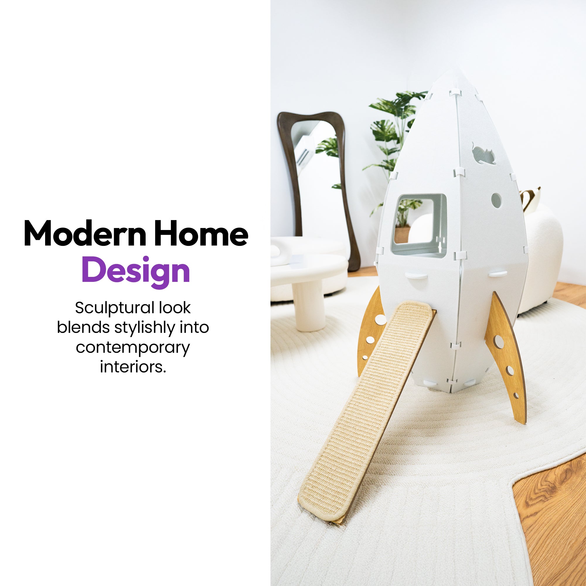 🪐 SPACESHIP-INSPIRED DESIGN – Sleek rocket silhouette creates an exciting new play environment for cats.