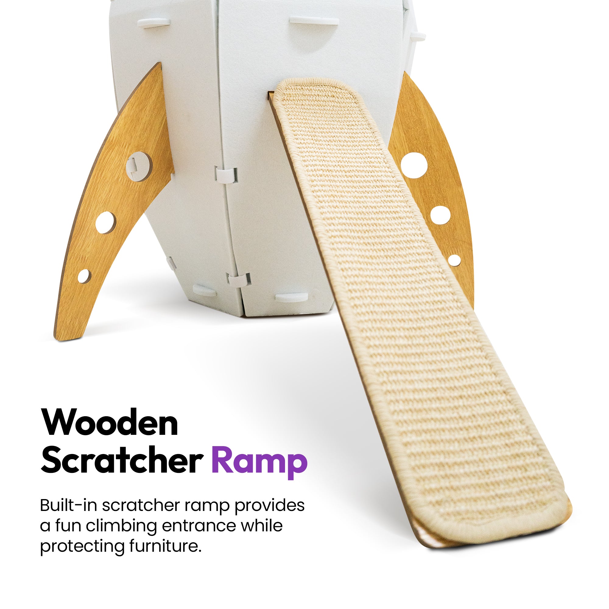 🪜 WOODEN SCRATCHER RAMP – Built-in scratcher ramp provides a fun climbing entrance while protecting furniture.