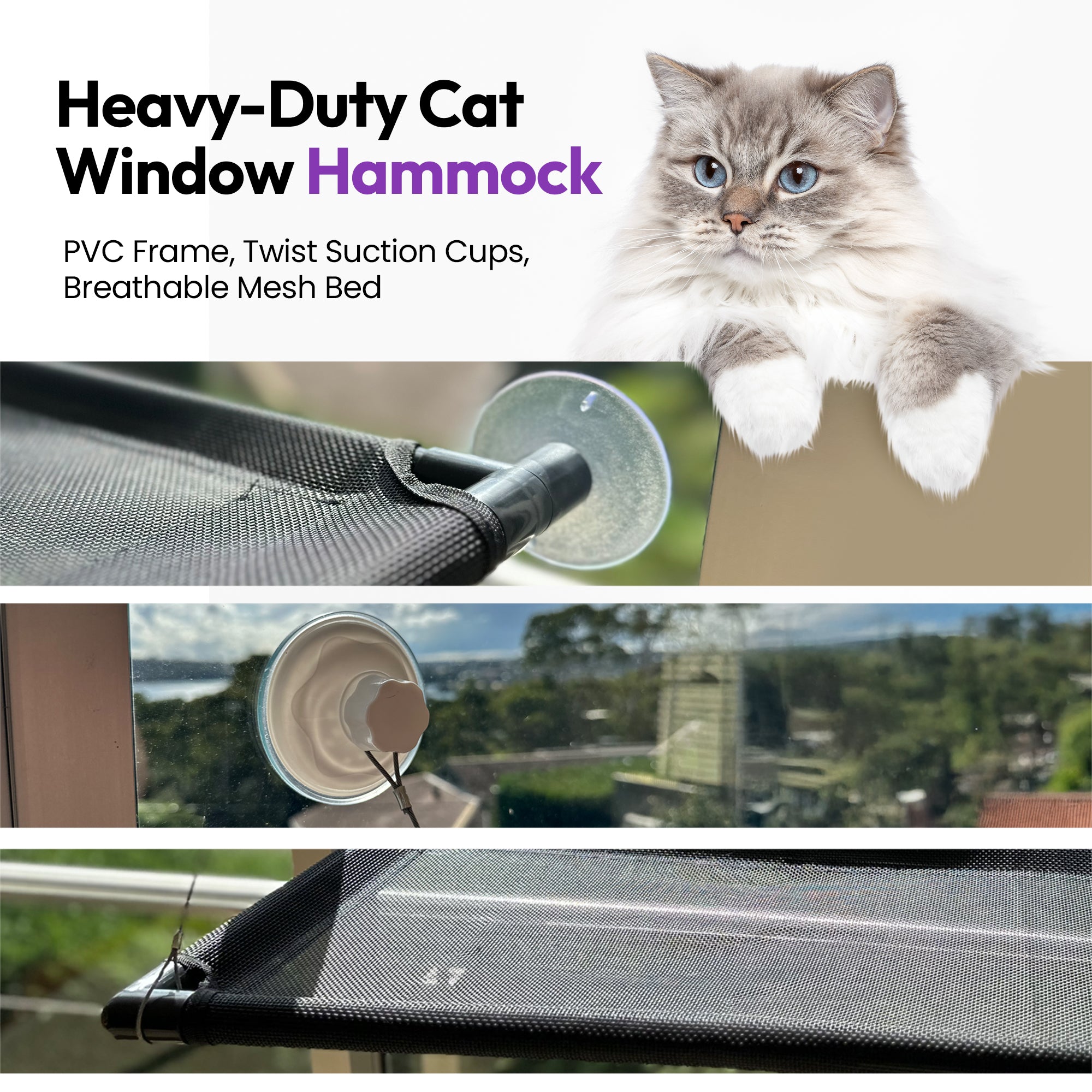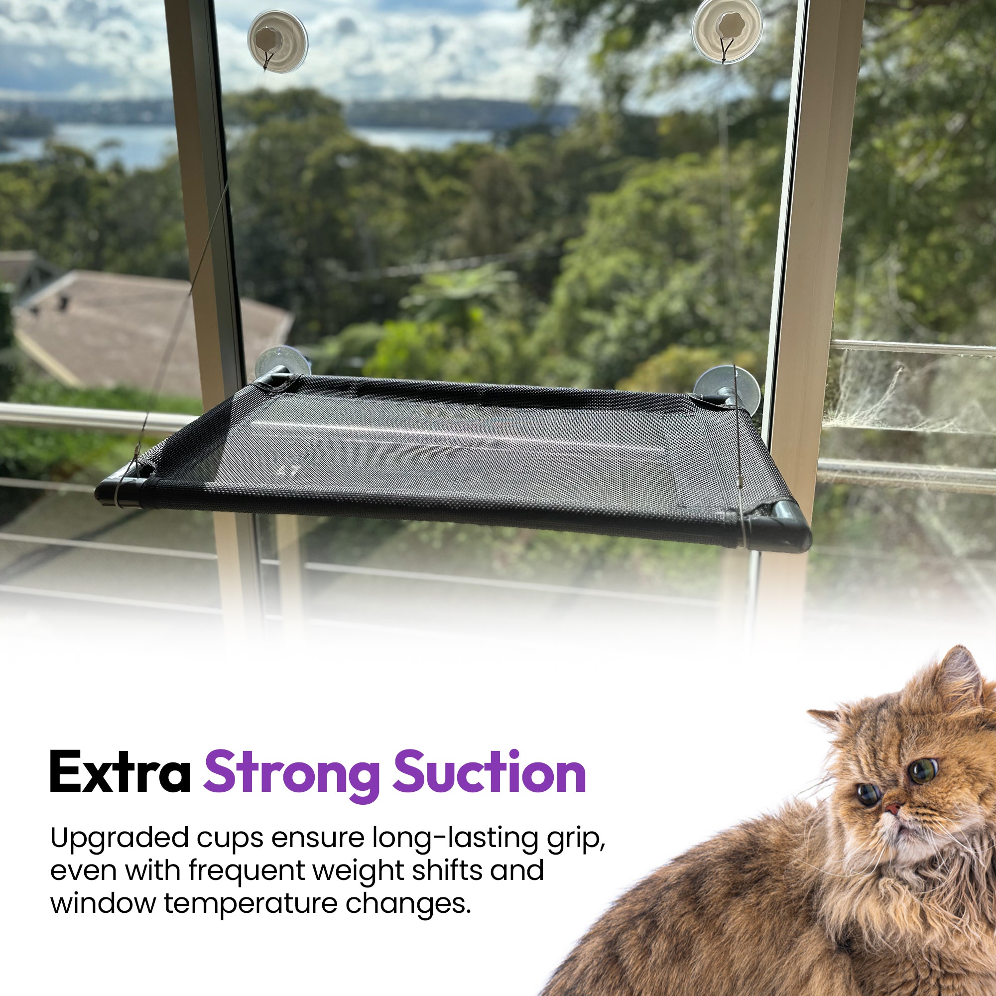 将任何窗户变成舒适的日光浴场所,为您的猫咪提供最佳的观鸟、看人和小憩的座位。☁️🐦 - ✔️ 强力吸附 + 安全第一 🛡️