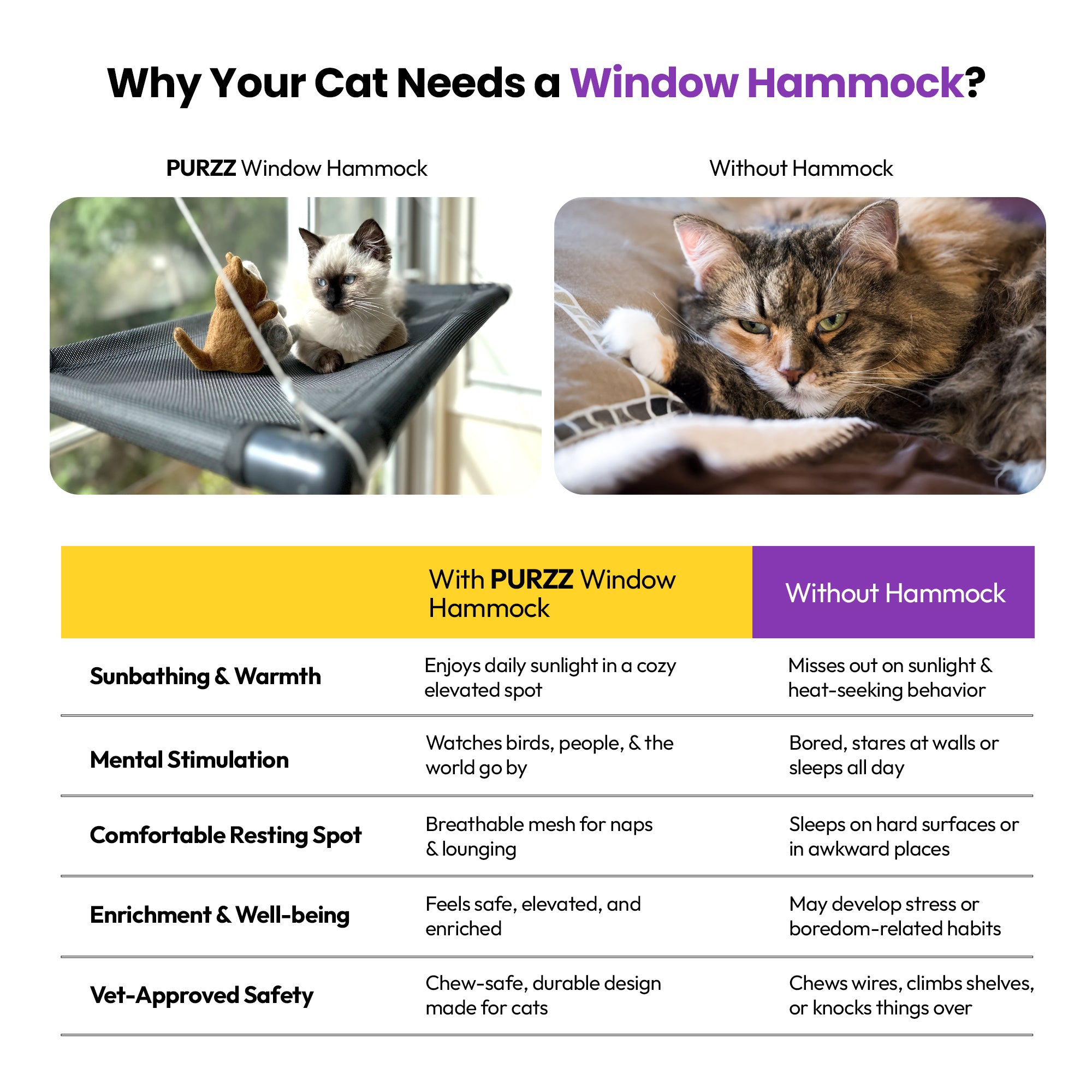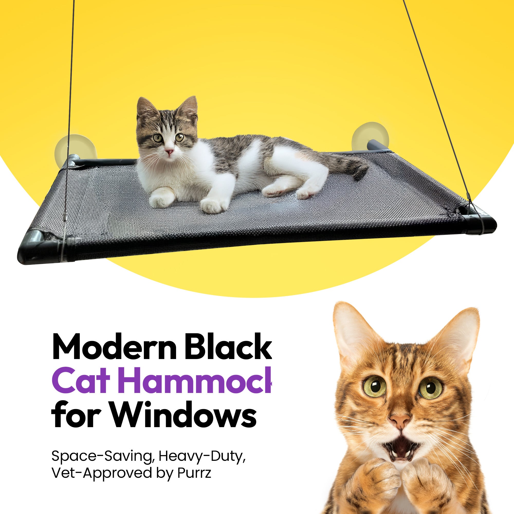用 PURRZ 窗口吊床 奢宠您的室内猫咪,让它们享受梦想中的休闲场所 – 完美结合了舒适、玩耍和放松。今天就将它加入购物车,让日光浴开始吧!🛒☀️🐾