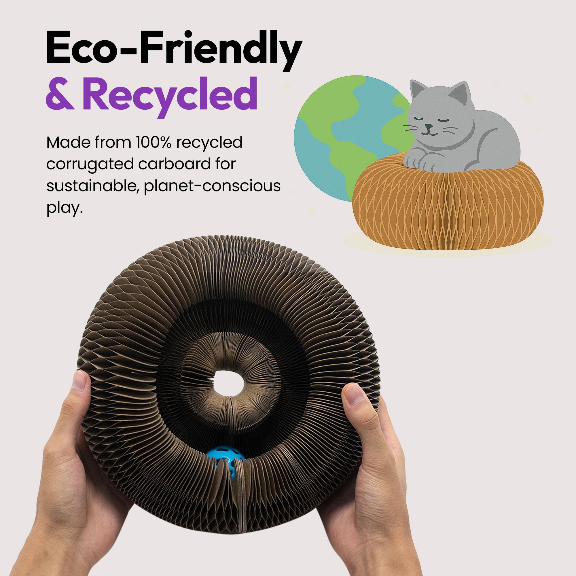 ♻️ PURRZ 2合1纸板猫抓板带铃球 – 兽医设计的环保乐趣猫玩具 🐾